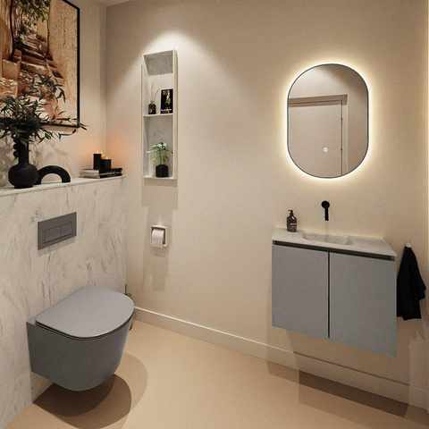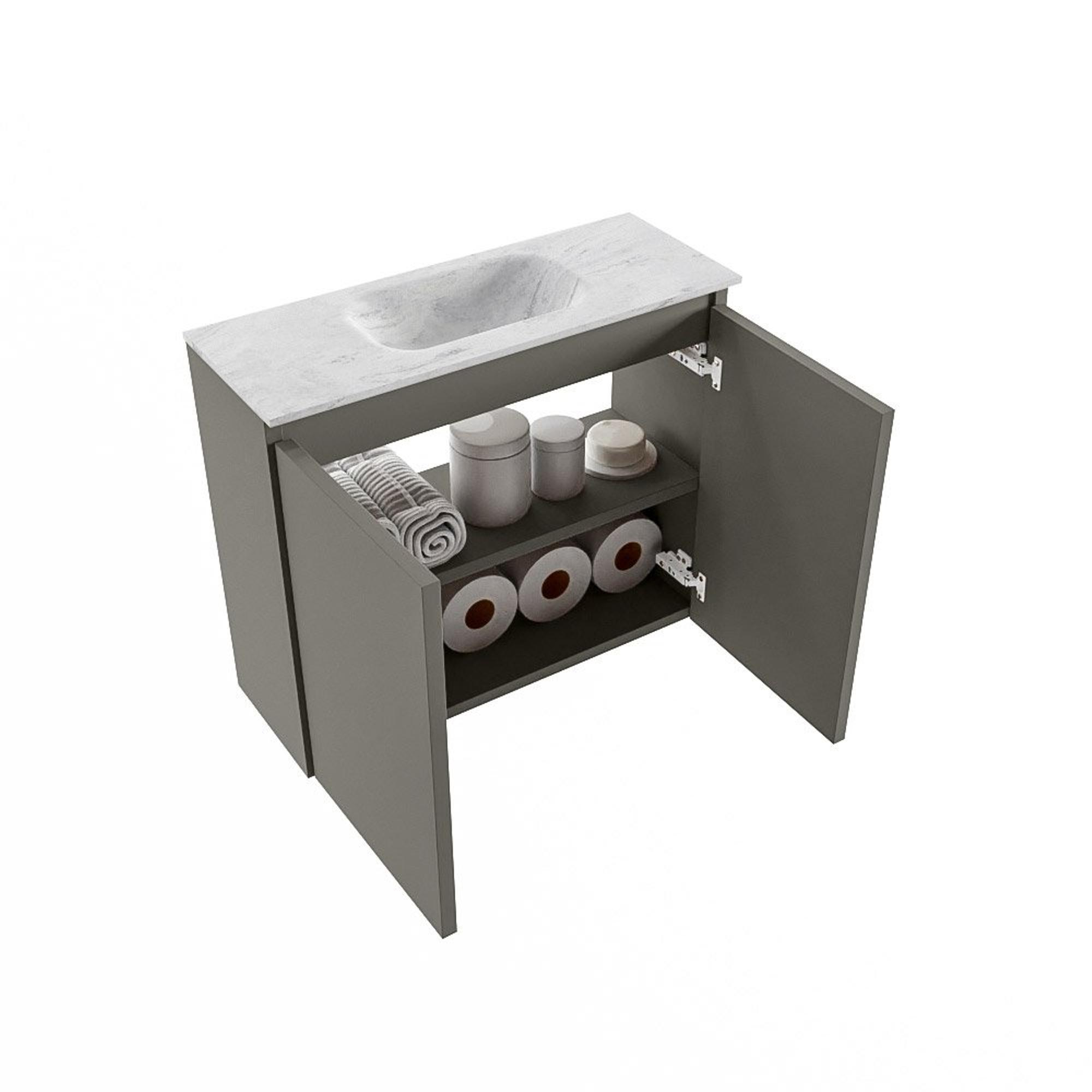MONDIAZ TURE-DLUX Meuble de toilette 60 cm Smoke. Lavabo EDEN Opalo position milieu. Sans trou de robinet.