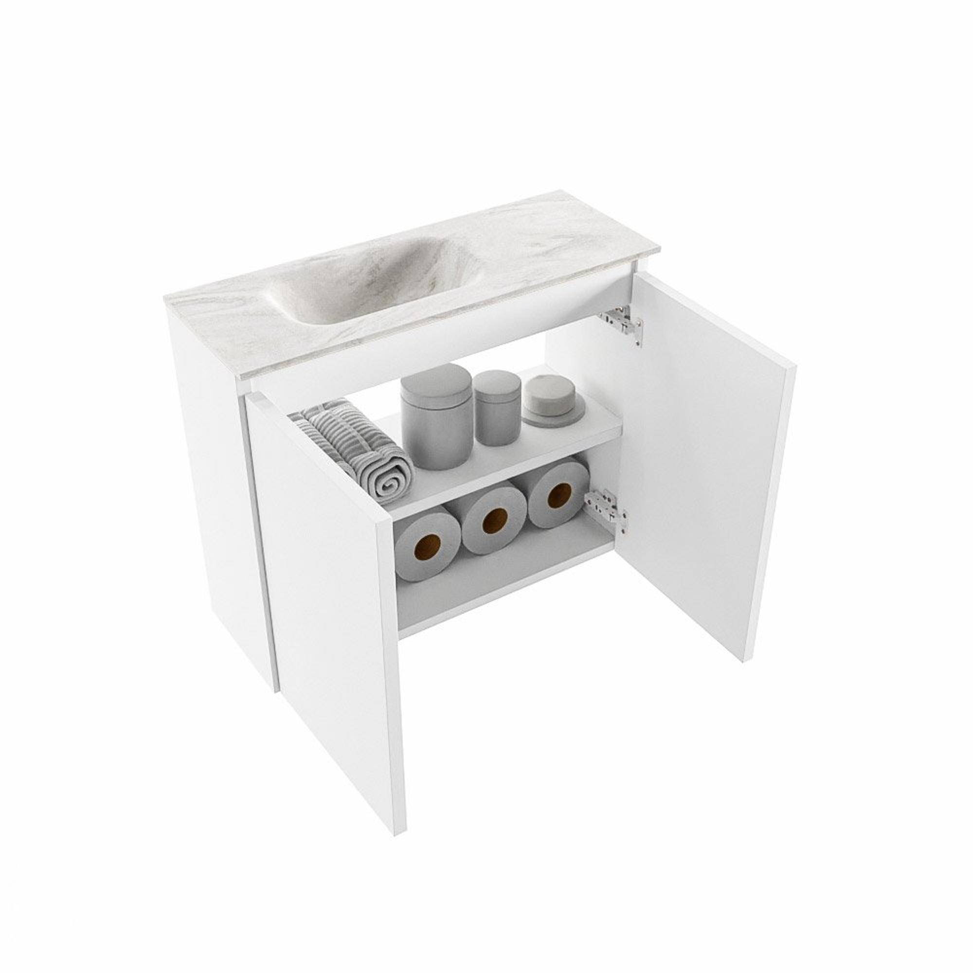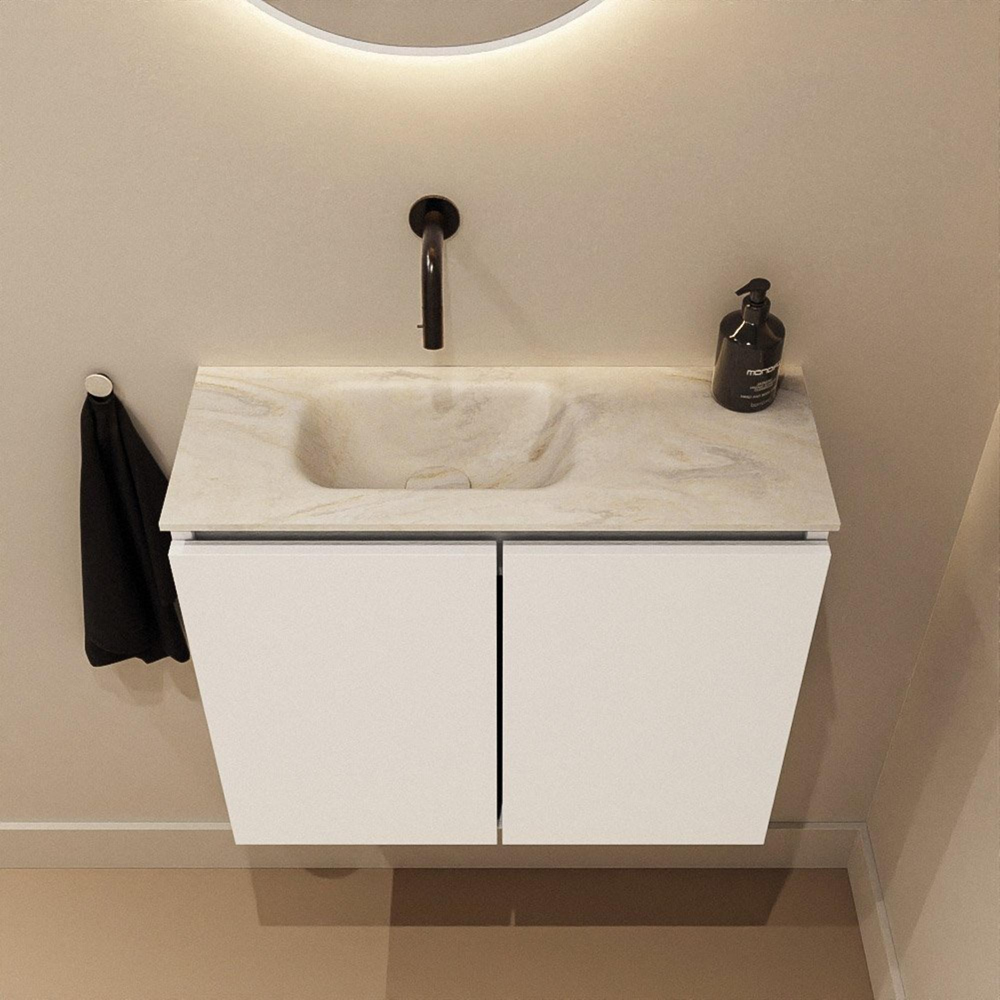 MONDIAZ TURE-DLUX meuble WC 60cm Talc. EDEN vasque Ostra position gauche. Sans trou de robinet.