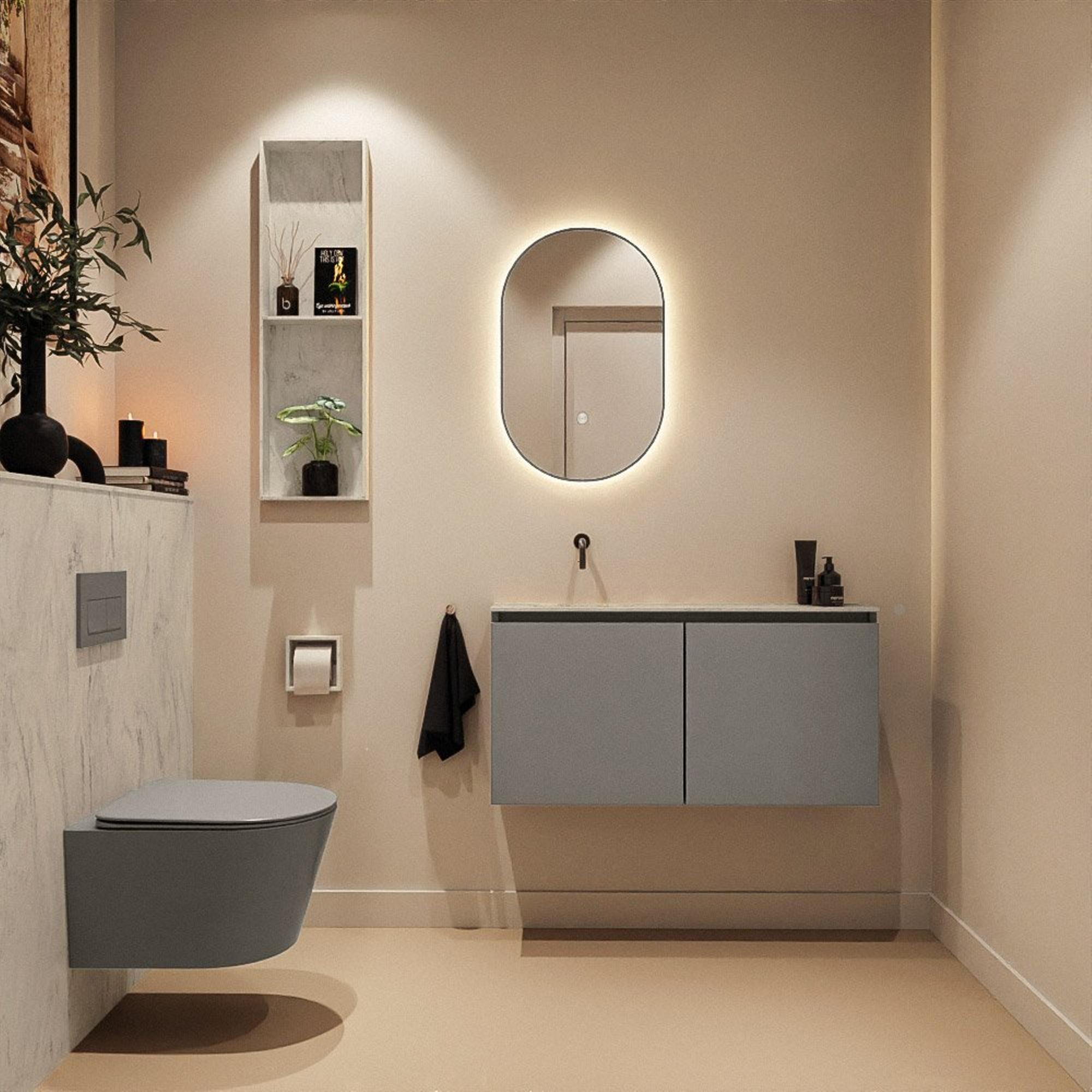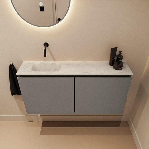 MONDIAZ TURE-DLUX Meuble WC 100 cm Smoke. EDEN lavabo Opalo position gauche. Sans trou de robinet.