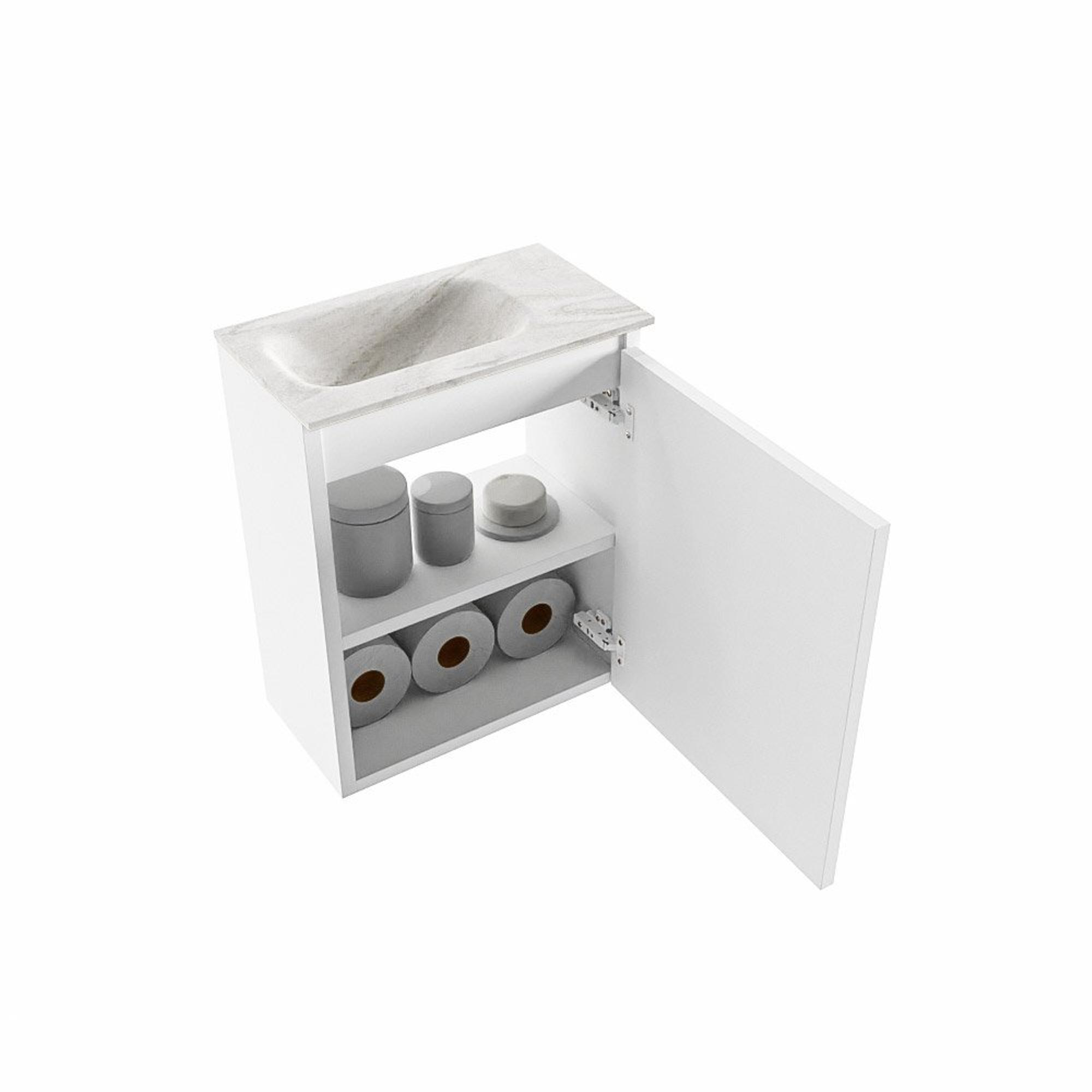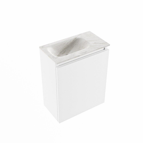 MONDIAZ TURE-DLUX Meuble de toilettes 40cm Talc. EDEN lavabo Ostra position gauche. Avec 1 trou de robinet.