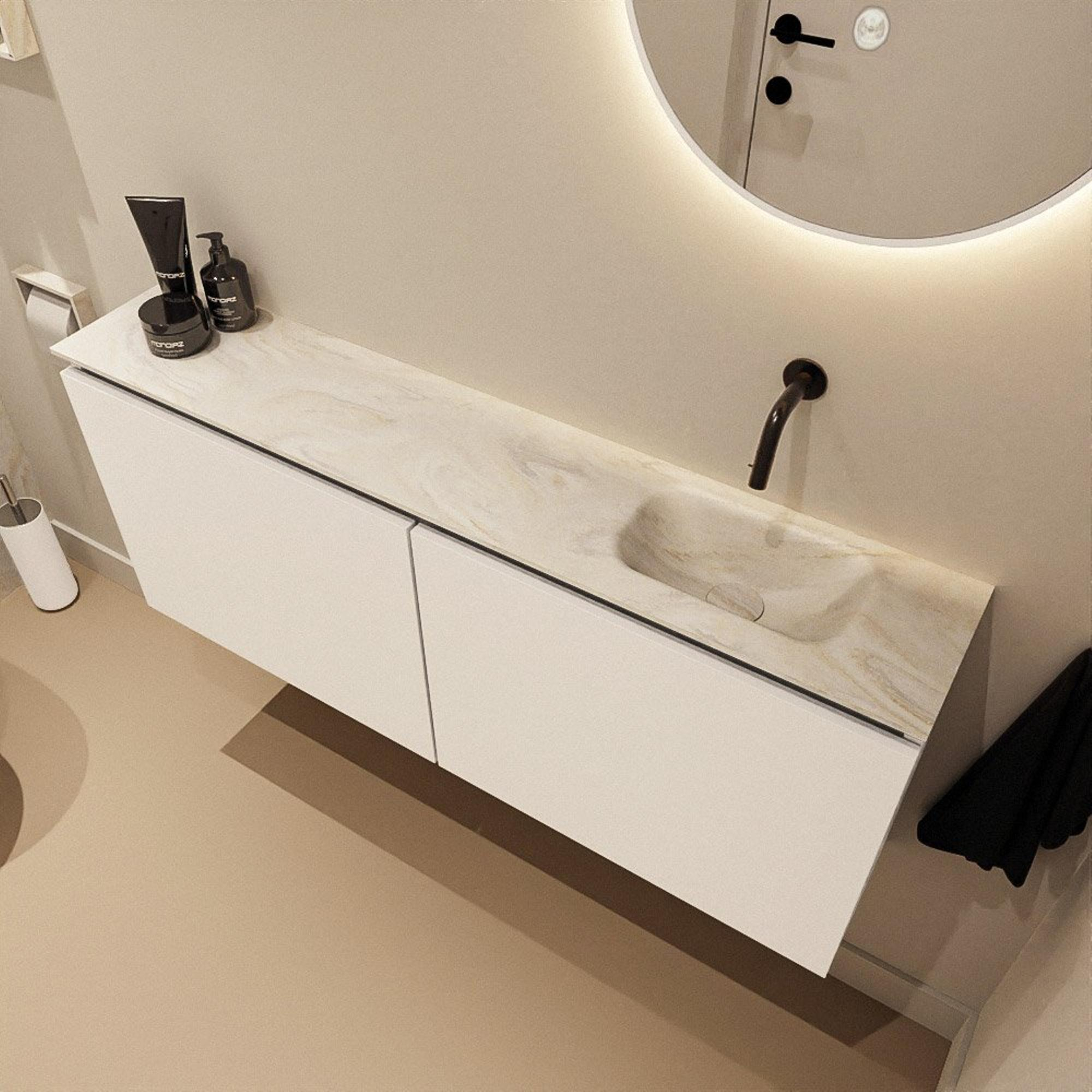 MONDIAZ TURE-DLUX Meuble WC 120 cm Talc. EDEN vasque Ostra position droite. Sans trou de robinetterie.