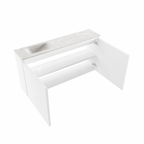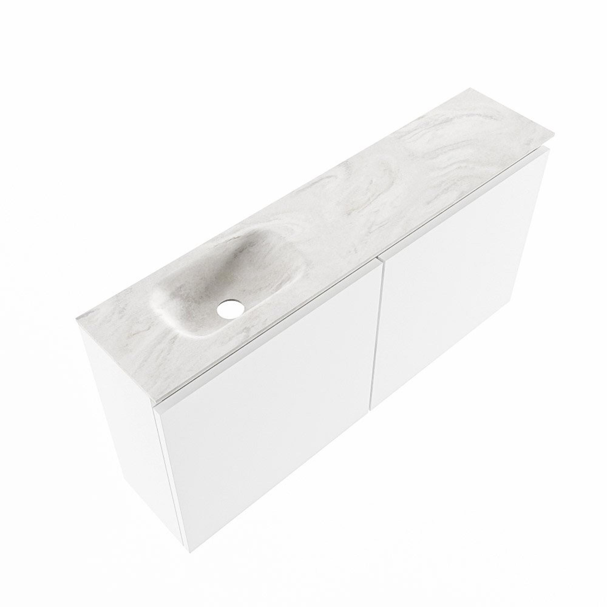MONDIAZ TURE-DLUX meuble de toilette 100 cm Talc. EDEN vasque Ostra position gauche. Avec 1 trou de robinet.