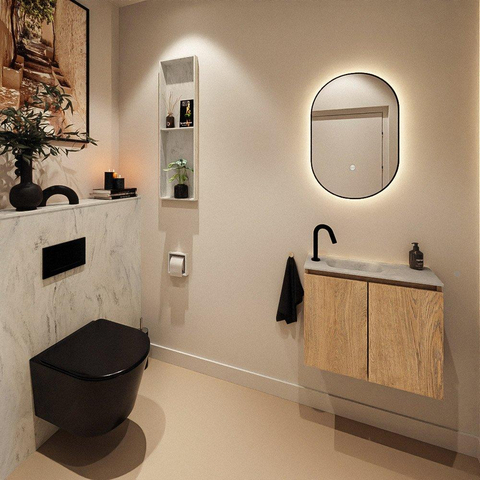 MONDIAZ TURE-DLUX meuble WC 60 cm Washed Oak. Lavabo EDEN Opalo position gauche. Avec 1 trou de robinet.