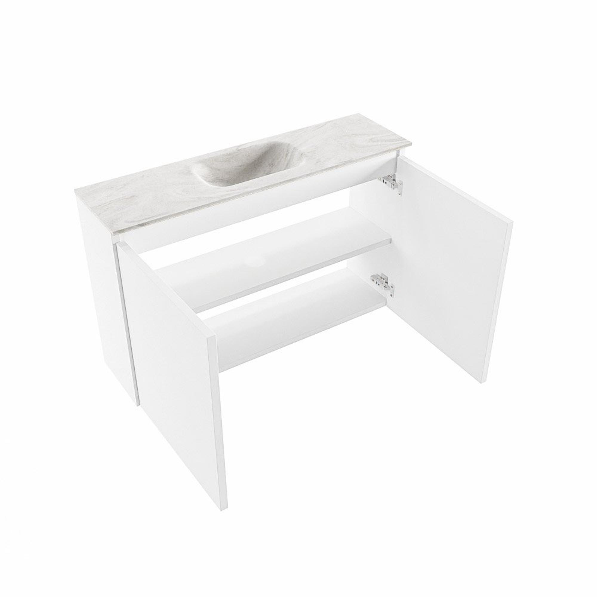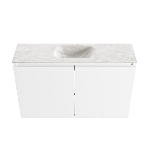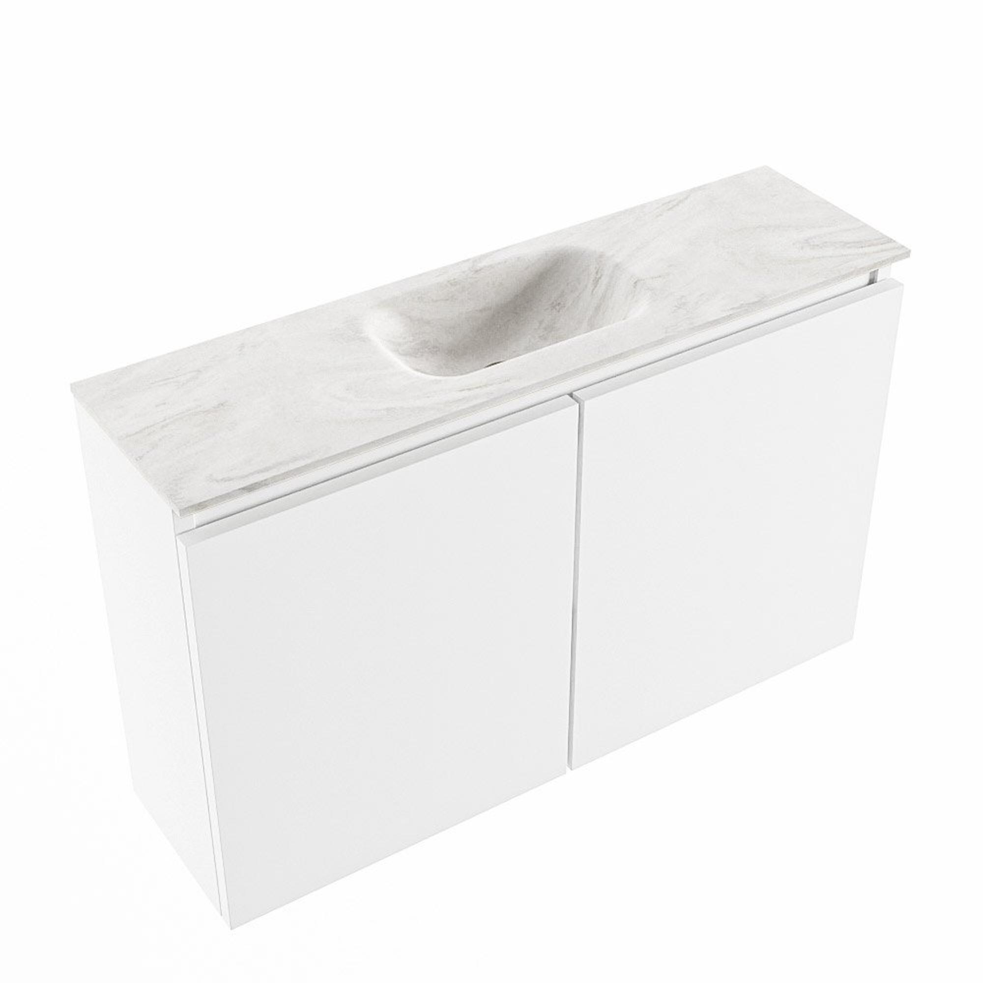 MONDIAZ TURE-DLUX Meuble WC 80 cm Talc. Lavabo EDEN Ostra position milieu. Avec 1 trou de robinet.