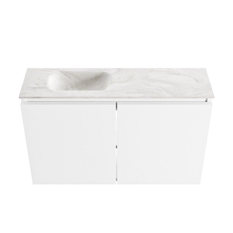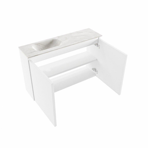 MONDIAZ TURE-DLUX Meuble de toilettes 80 cm Talc. EDEN lavabo Ostra position gauche. Avec 1 trou de robinet.