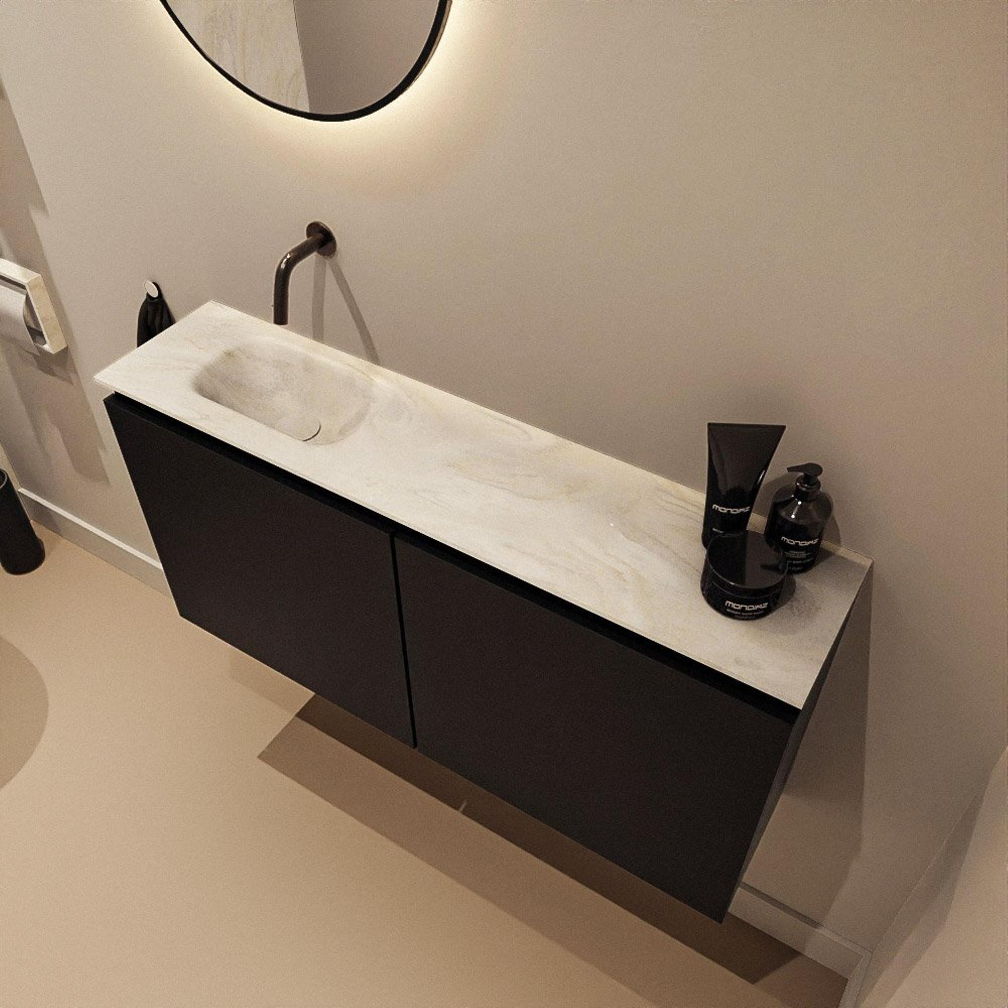MONDIAZ TURE-DLUX meuble WC 100cm Urban. EDEN lavabo Ostra position gauche. Sans trou de robinet.