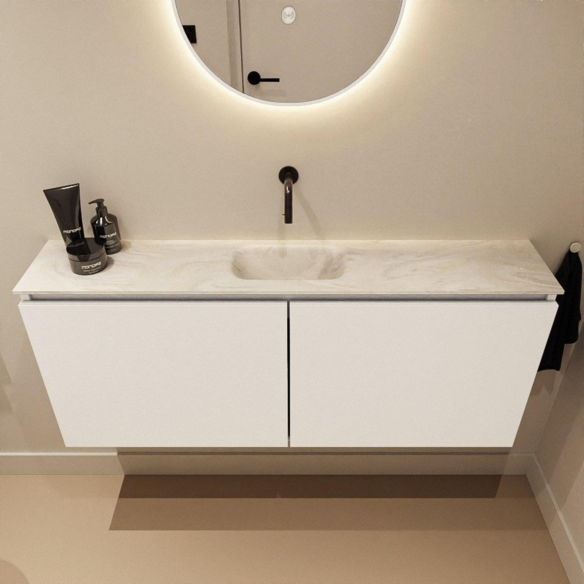MONDIAZ TURE-DLUX 120cm meuble WC Talc. EDEN vasque Ostra position milieu. Sans trou de robinet.