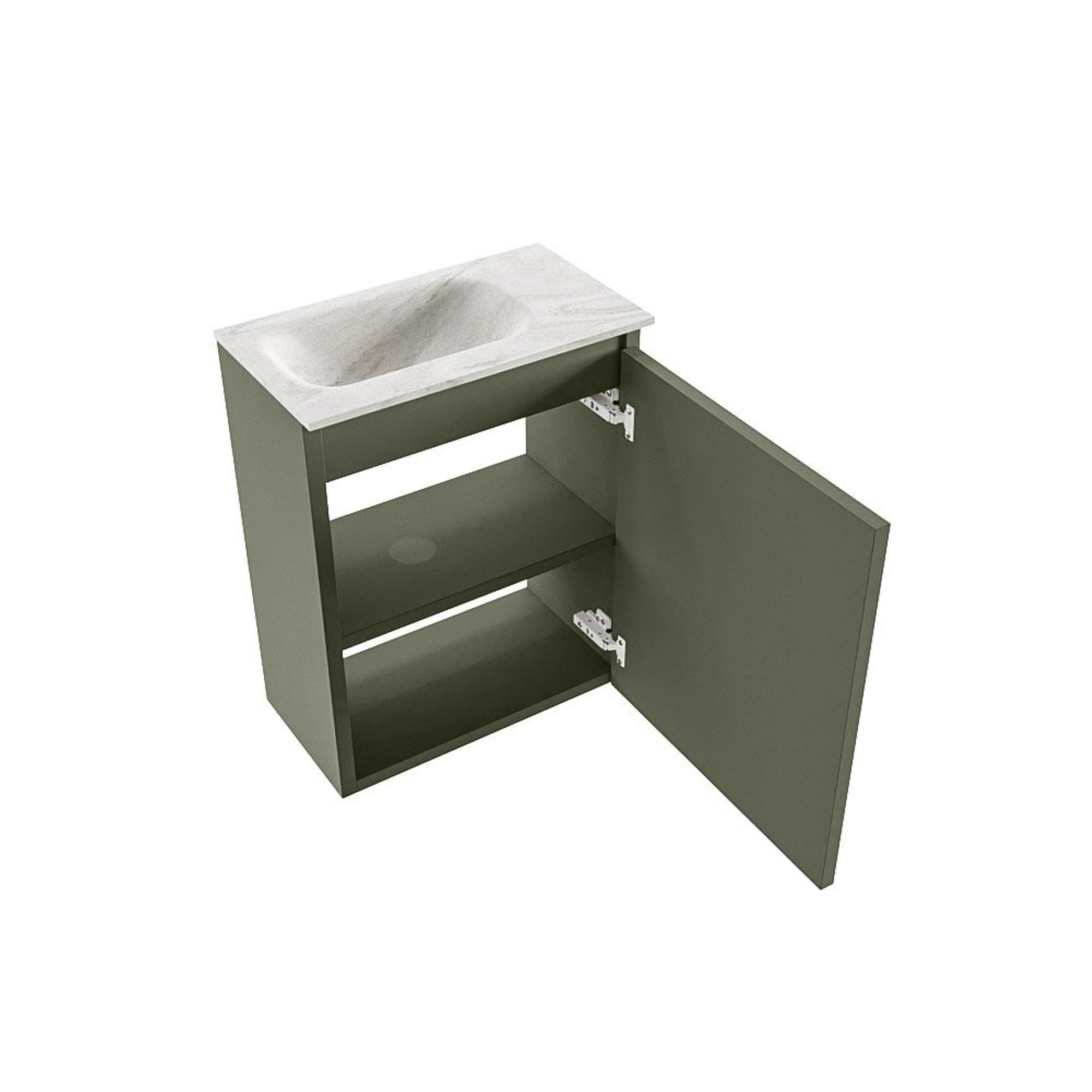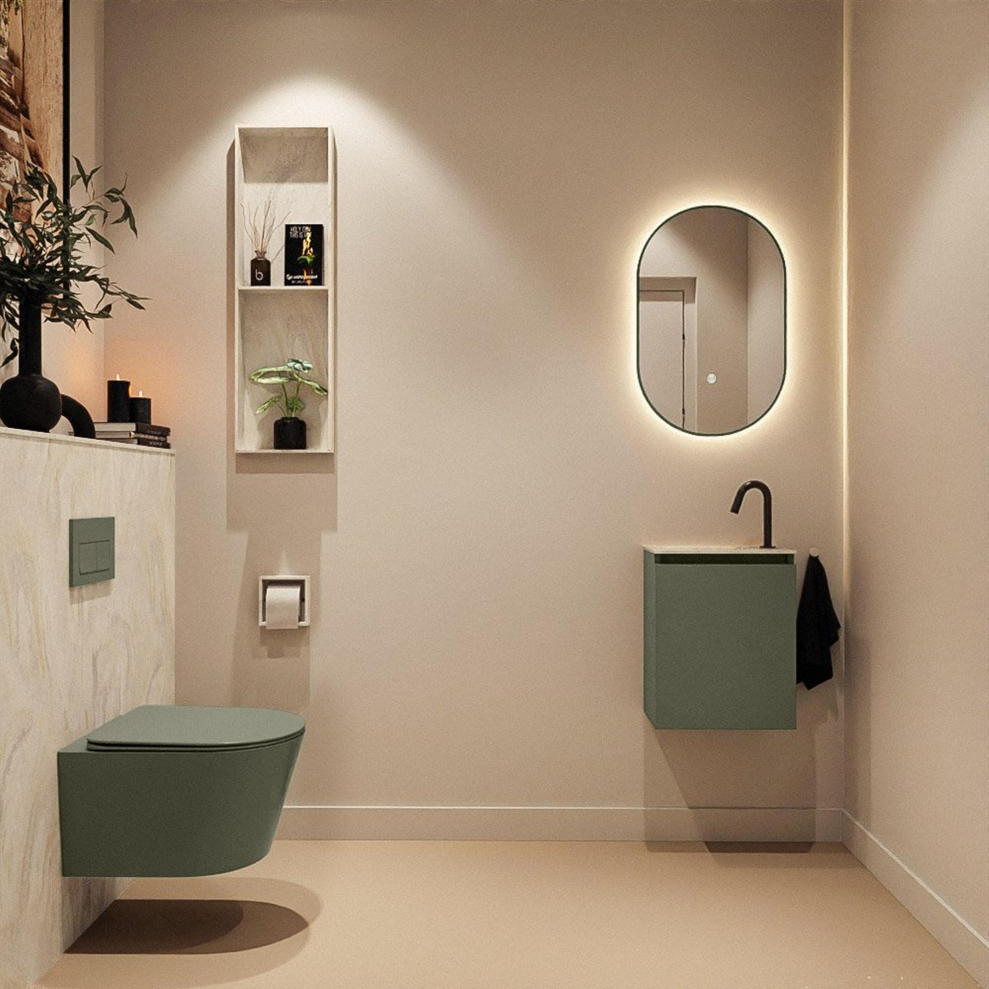 MONDIAZ TURE-DLUX Meuble WC 40 cm Army. Lavabo EDEN Ostra position gauche. Avec 1 trou de robinet.