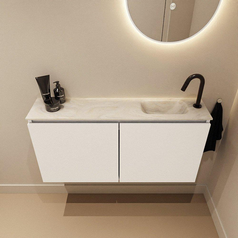 MONDIAZ TURE-DLUX Meuble WC 100 cm Talc. EDEN lavabo Ostra position droite. Avec 1 trou de robinetterie.