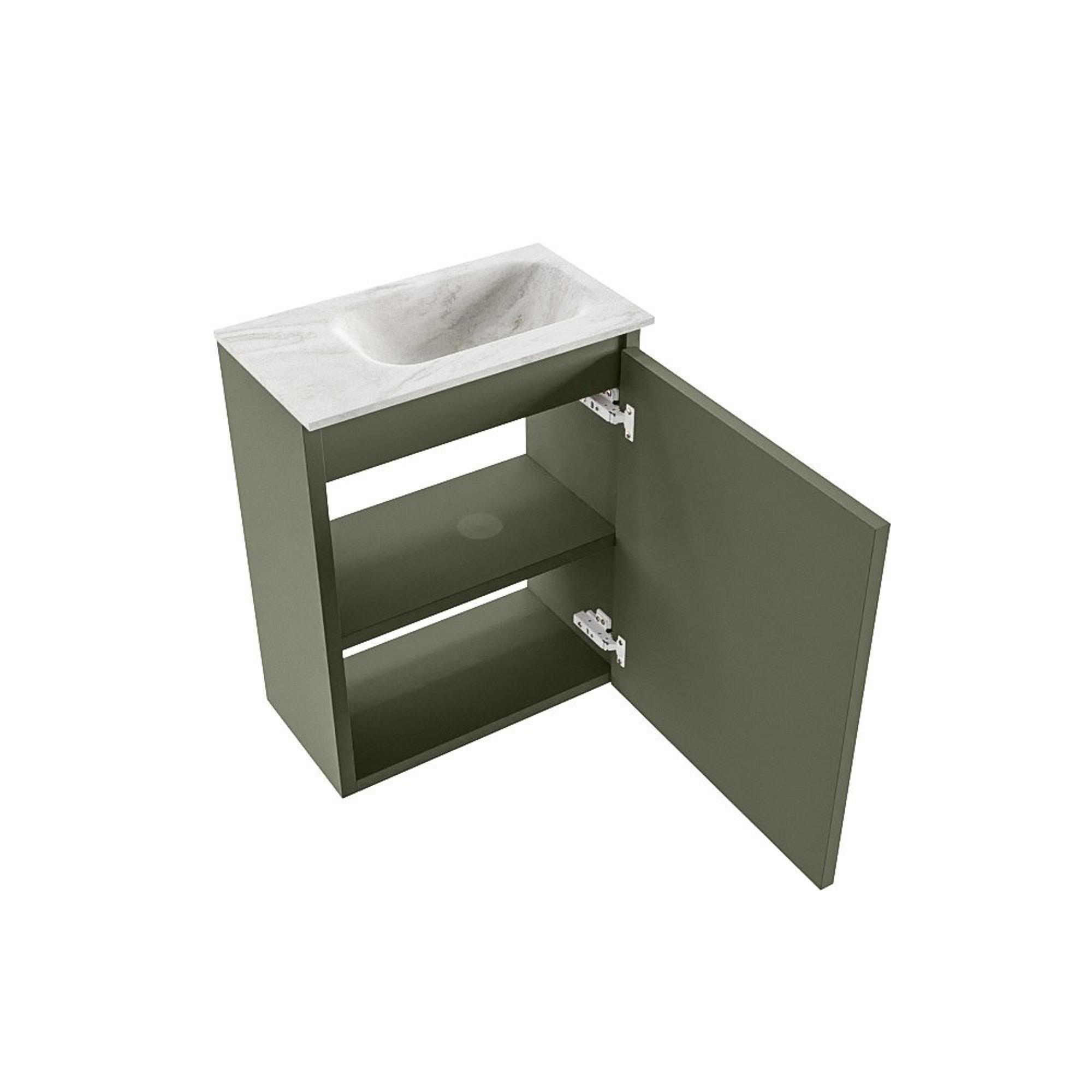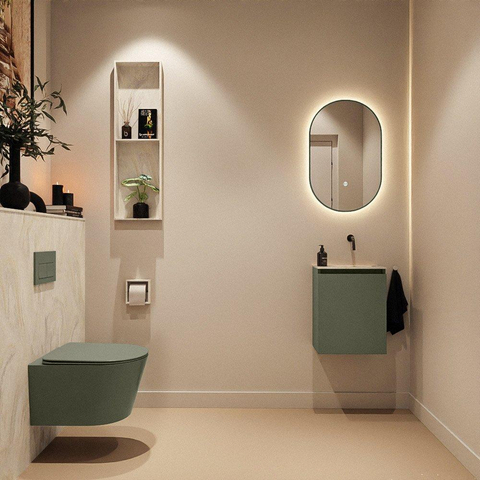 MONDIAZ TURE-DLUX meuble de toilettes 40 cm Army. Lavabo EDEN Ostra position à droite. Sans trou de robinet.