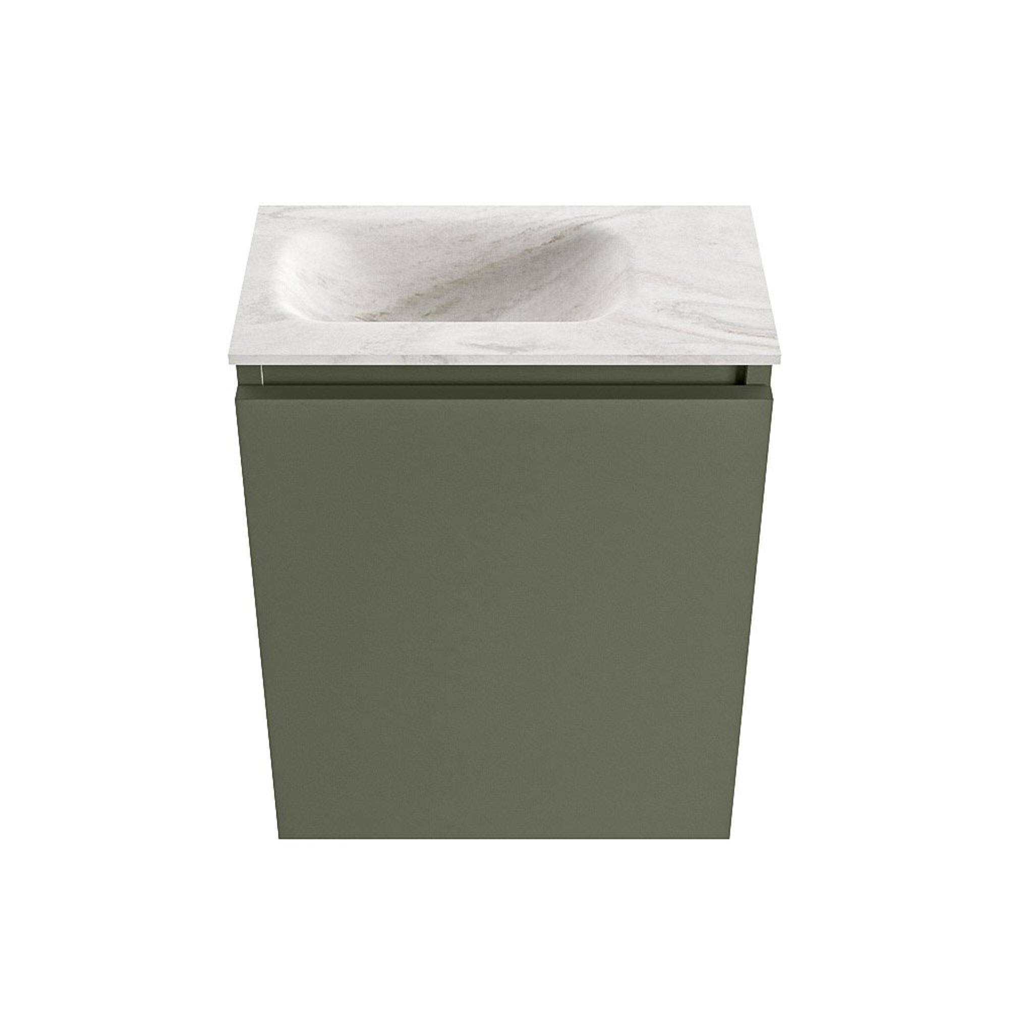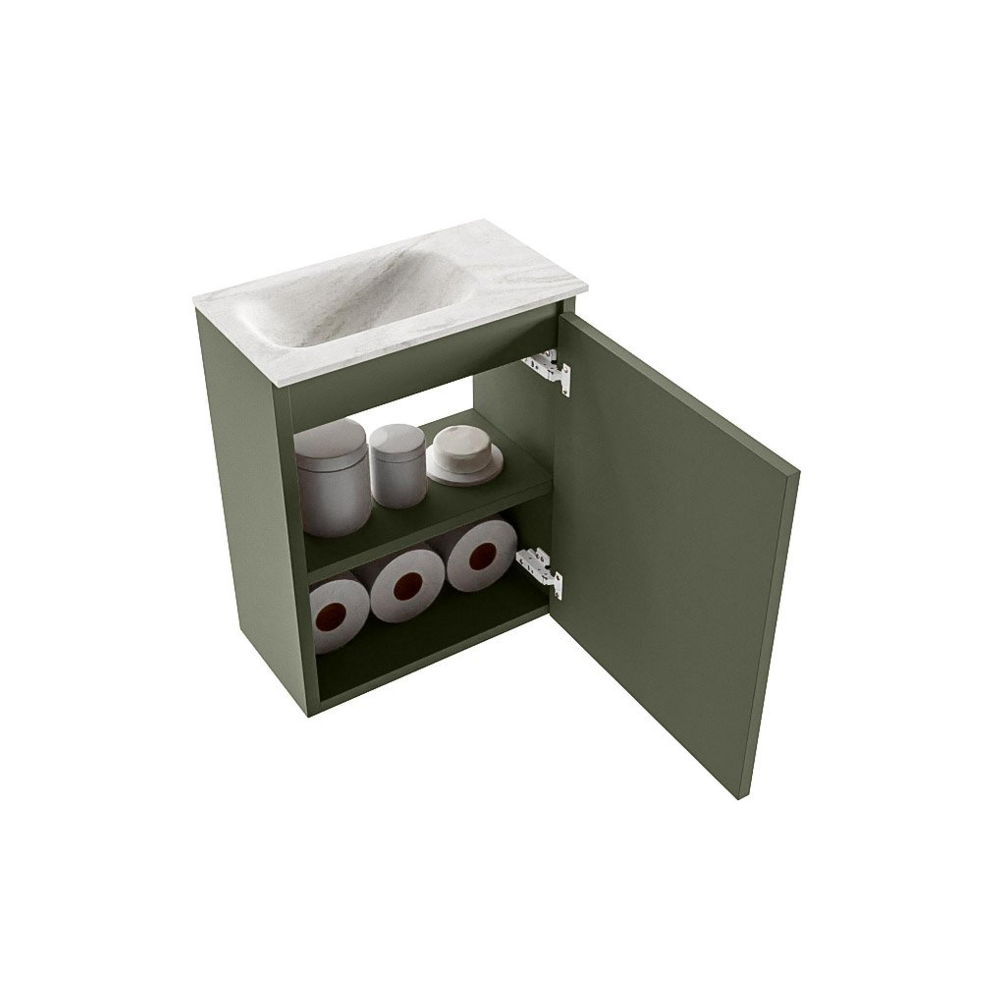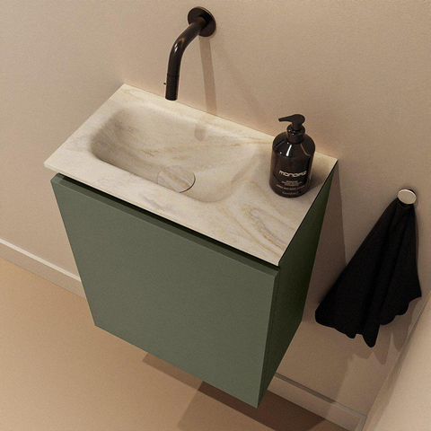 MONDIAZ TURE-DLUX Meuble de toilettes 40 cm Army. Lavabo EDEN Ostra position gauche. Sans trou de robinet.