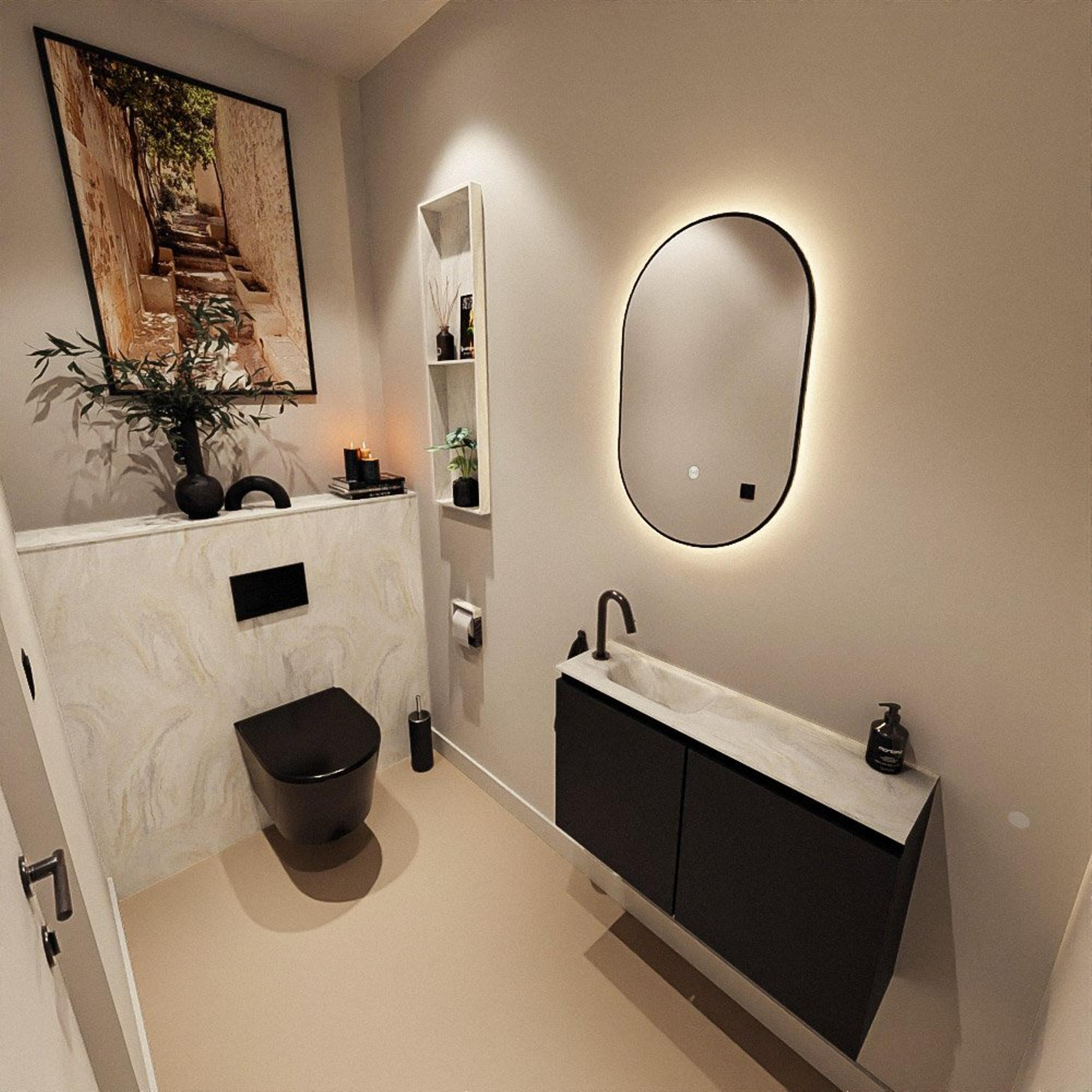 MONDIAZ TURE-DLUX Meuble WC 80 cm Urban. Lavabo EDEN Ostra position gauche. Avec 1 trou de robinet.