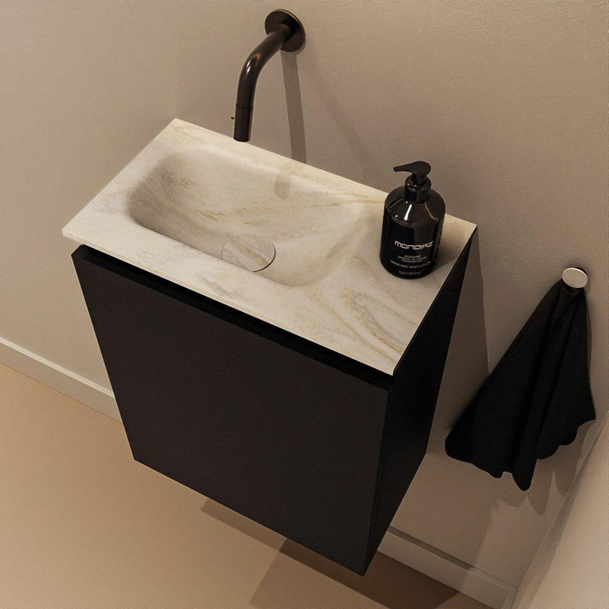 Avec une largeur de 40 cm et une profondeur de seulement 23 cm, ce meuble WC est parfaitement adapté aux petits espaces, comme un WC d'invités ou une niche étroite à côté de la porte. Ses dimensions compactes vous permettent de bouger librement sans crainte de vous cogner. Dans le même temps, la vasque offre suffisamment d'espace pour vous laver confortablement les mains. Comme le lavabo est positionné à gauche, une circulation logique se crée dans de nombreux WC : entrer, se laver les mains, se retourner et ressortir. Vous combinez ainsi une implantation réfléchie avec un look moderne, sans faire de concessions sur le confort.