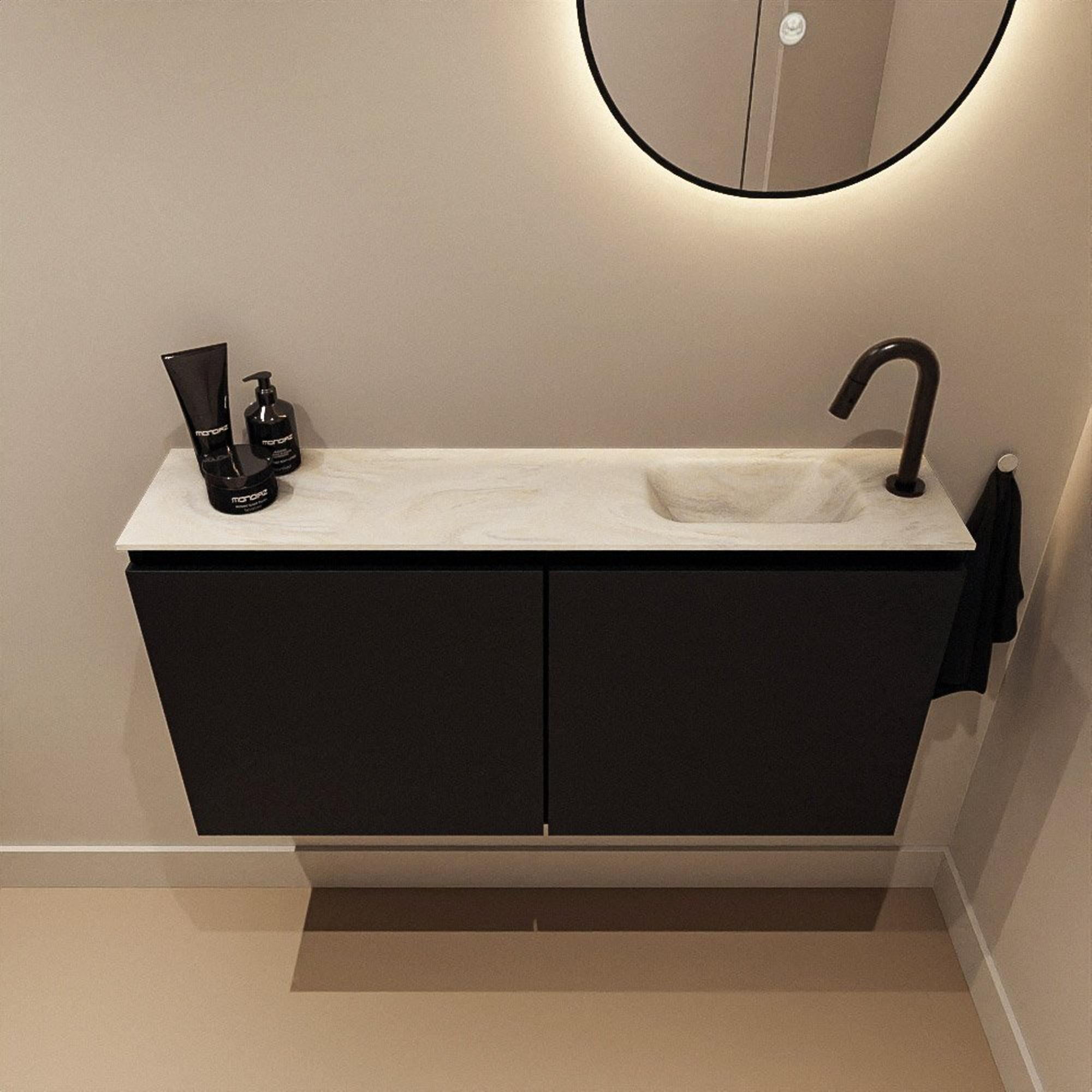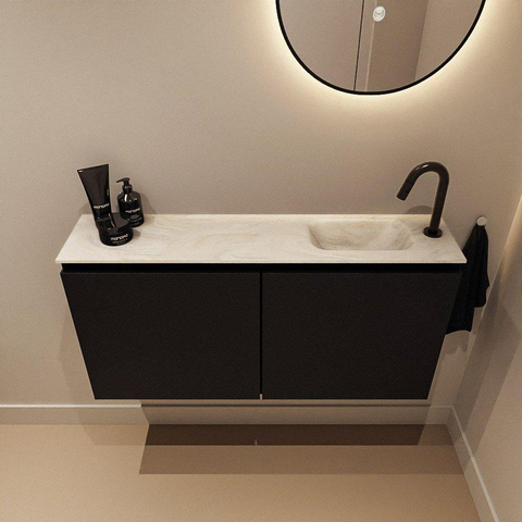 MONDIAZ TURE-DLUX meuble WC 100 cm Urban. EDEN lavabo Ostra position droite. Avec 1 trou de robinet.