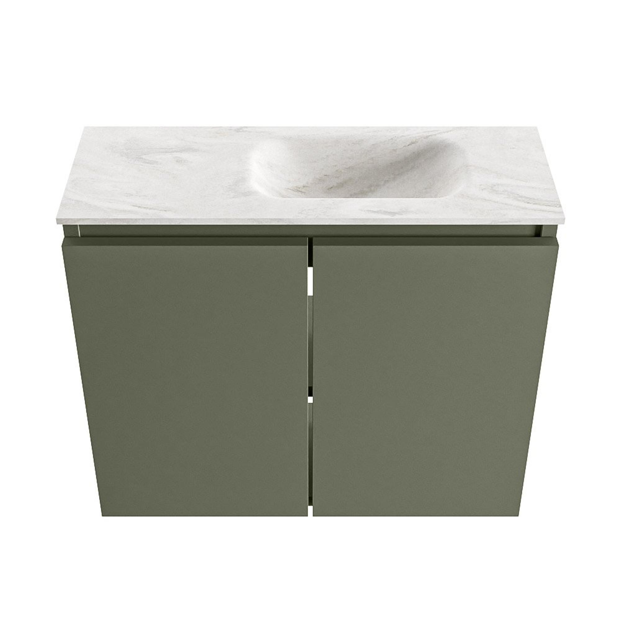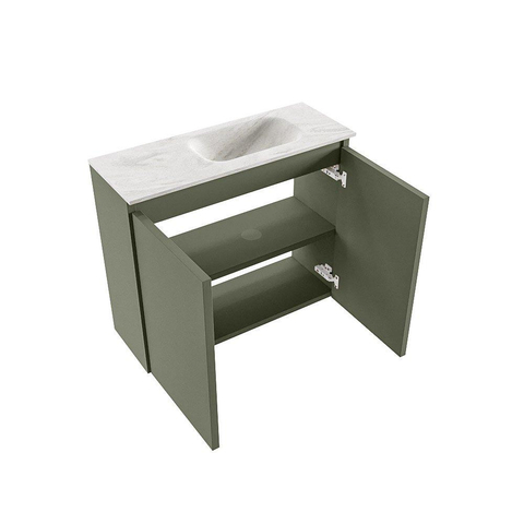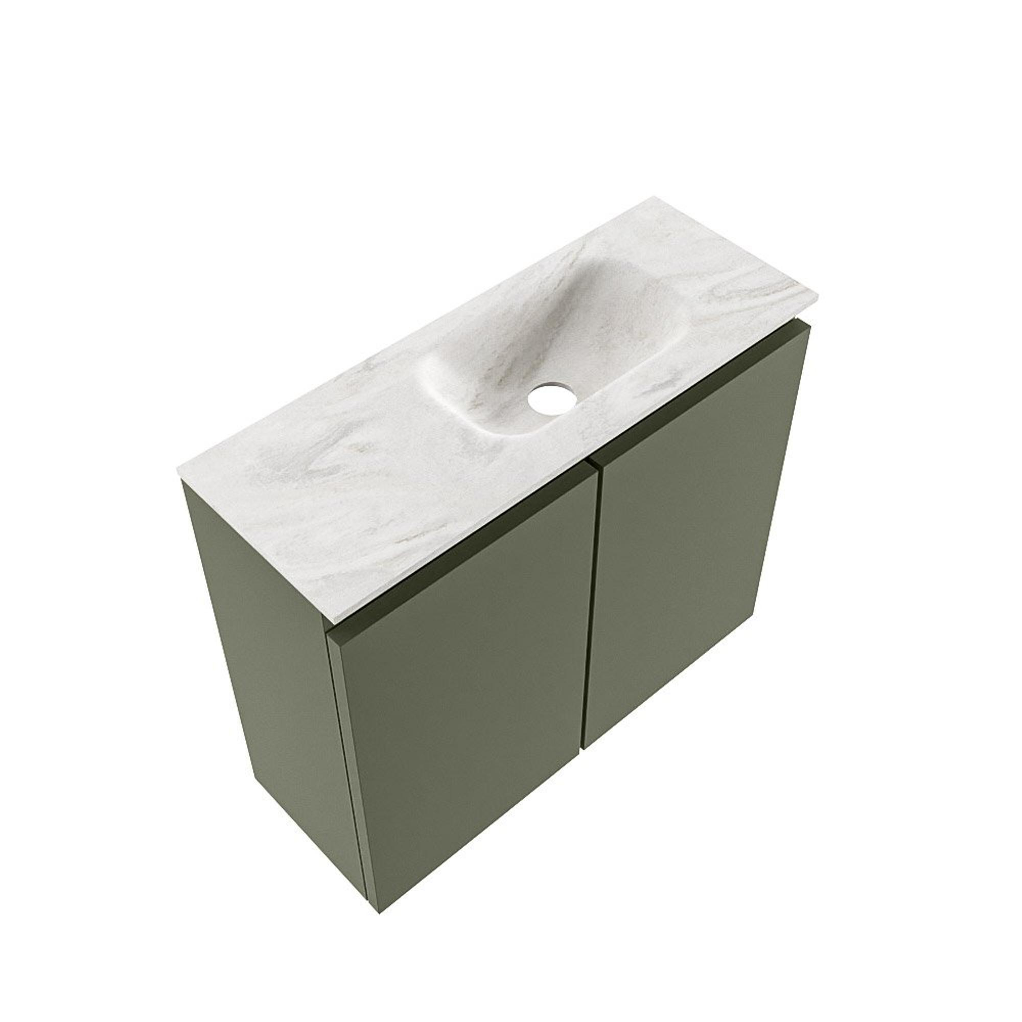 MONDIAZ TURE-DLUX Meuble de toilettes 60 cm Army. Lavabo EDEN Ostra position à droite. Avec 1 trou de robinet.