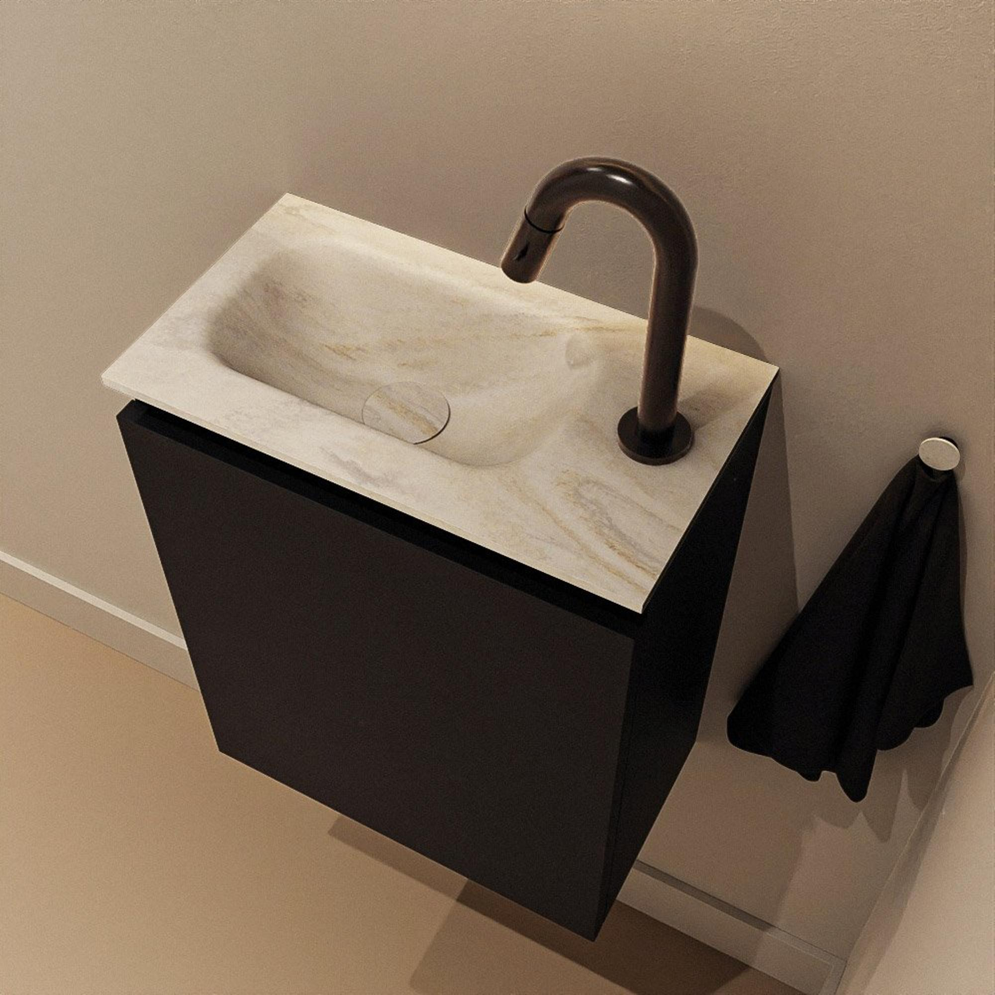 MONDIAZ TURE-DLUX Meuble de toilettes 40 cm Urban. EDEN lavabo Ostra position gauche. Avec 1 trou de robinet.