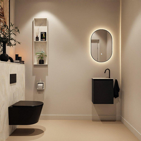 Avec une dimension de 40x23x50 cm, ce meuble est spécialement conçu pour les toilettes et les petites salles de bains où l'espace disponible est limité. Sa faible profondeur évite de cogner dedans, tout en vous offrant un véritable lave-mains et un petit meuble. Comme le lavabo est positionné à gauche, vous pouvez utiliser de façon optimale le mur et il reste suffisamment d'espace de circulation. Cela le rend particulièrement adapté aux toilettes longues et étroites ou à une petite deuxième salle de bains. Vous profitez ainsi du confort d'un véritable lavabo, sans sacrifier votre liberté de mouvement.