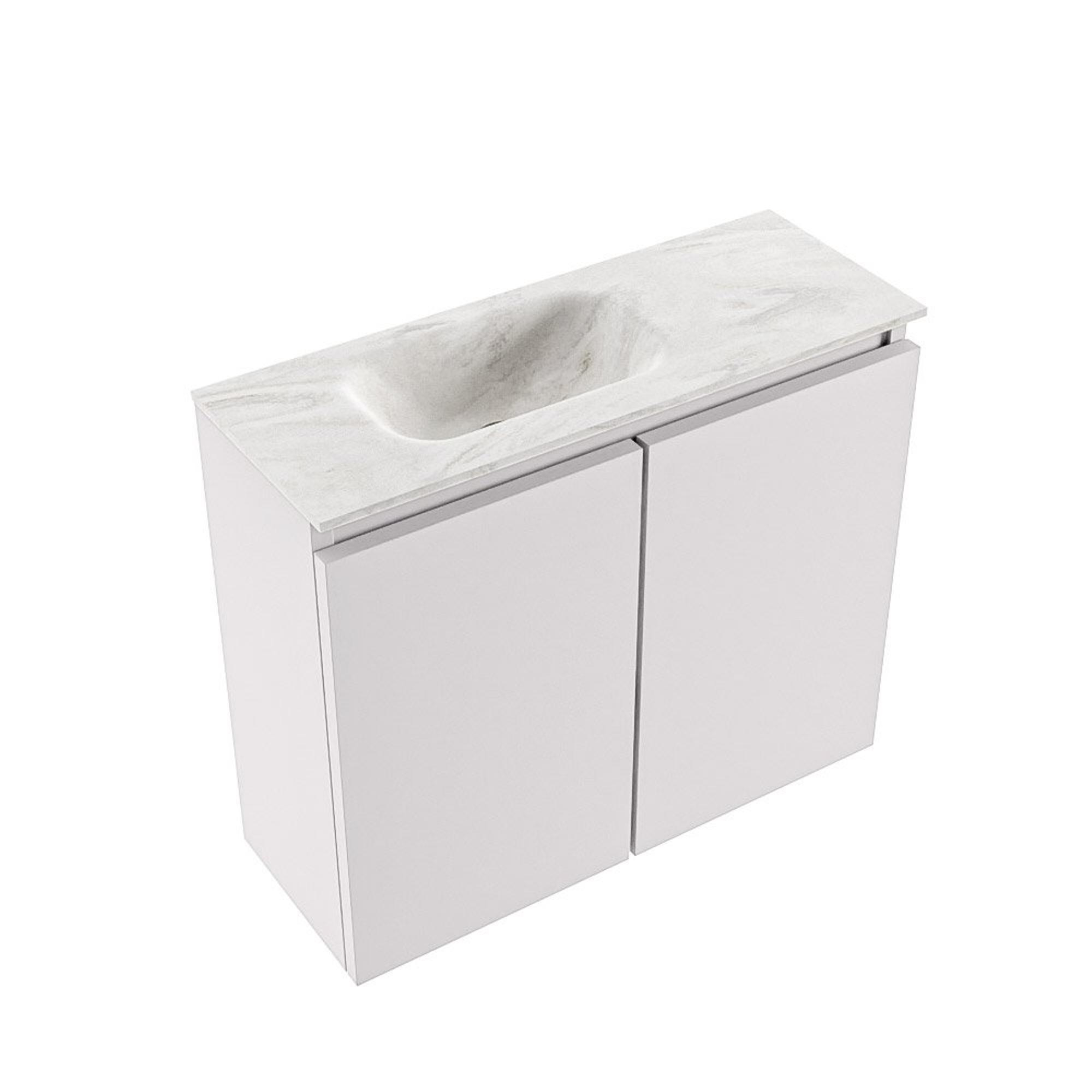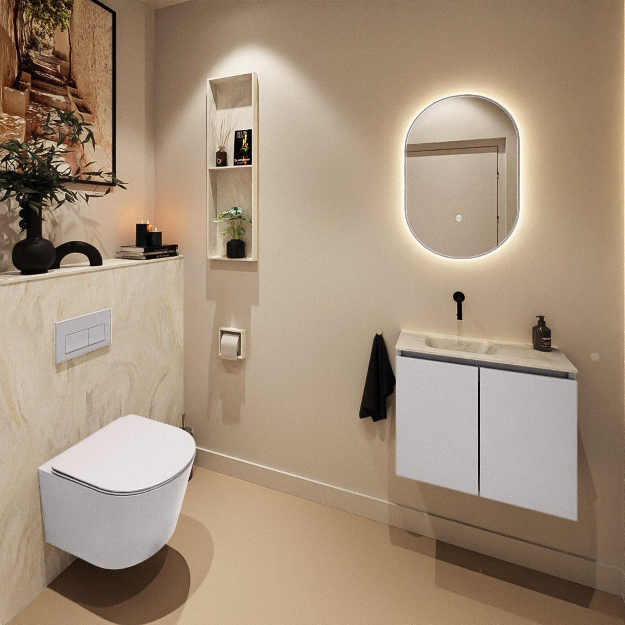 MONDIAZ TURE-DLUX meuble de toilettes 60 cm Cale. EDEN lavabo Ostra position gauche. Sans trou de robinet.