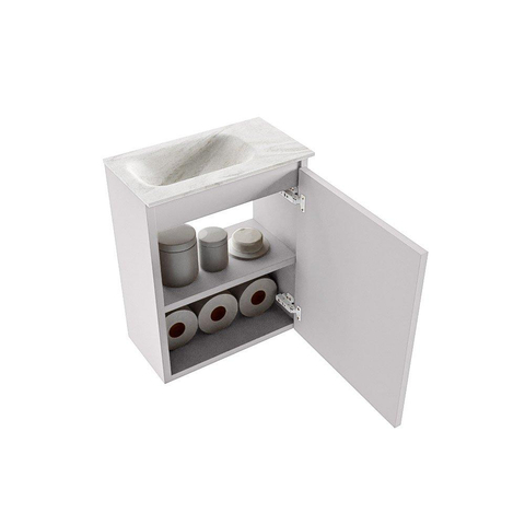 MONDIAZ TURE-DLUX meuble WC 40 cm Cale. EDEN lavabo Ostra position gauche. Avec 1 trou de robinet.