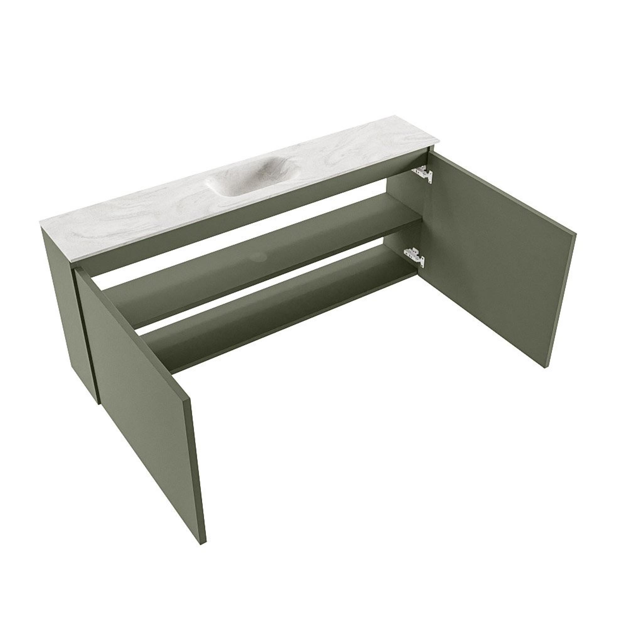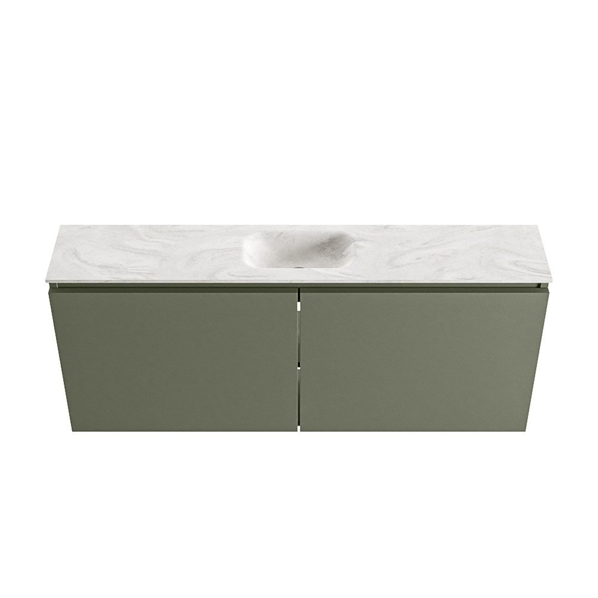 MONDIAZ TURE-DLUX meuble de toilettes 120cm Army. Lavabo EDEN Ostra position milieu. Sans trou de robinet.
