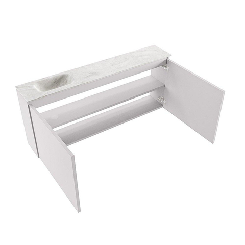 MONDIAZ TURE-DLUX Meuble de toilettes 120 cm Cale. EDEN lavabo Ostra position gauche. Sans trou de robinet.