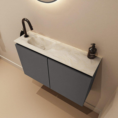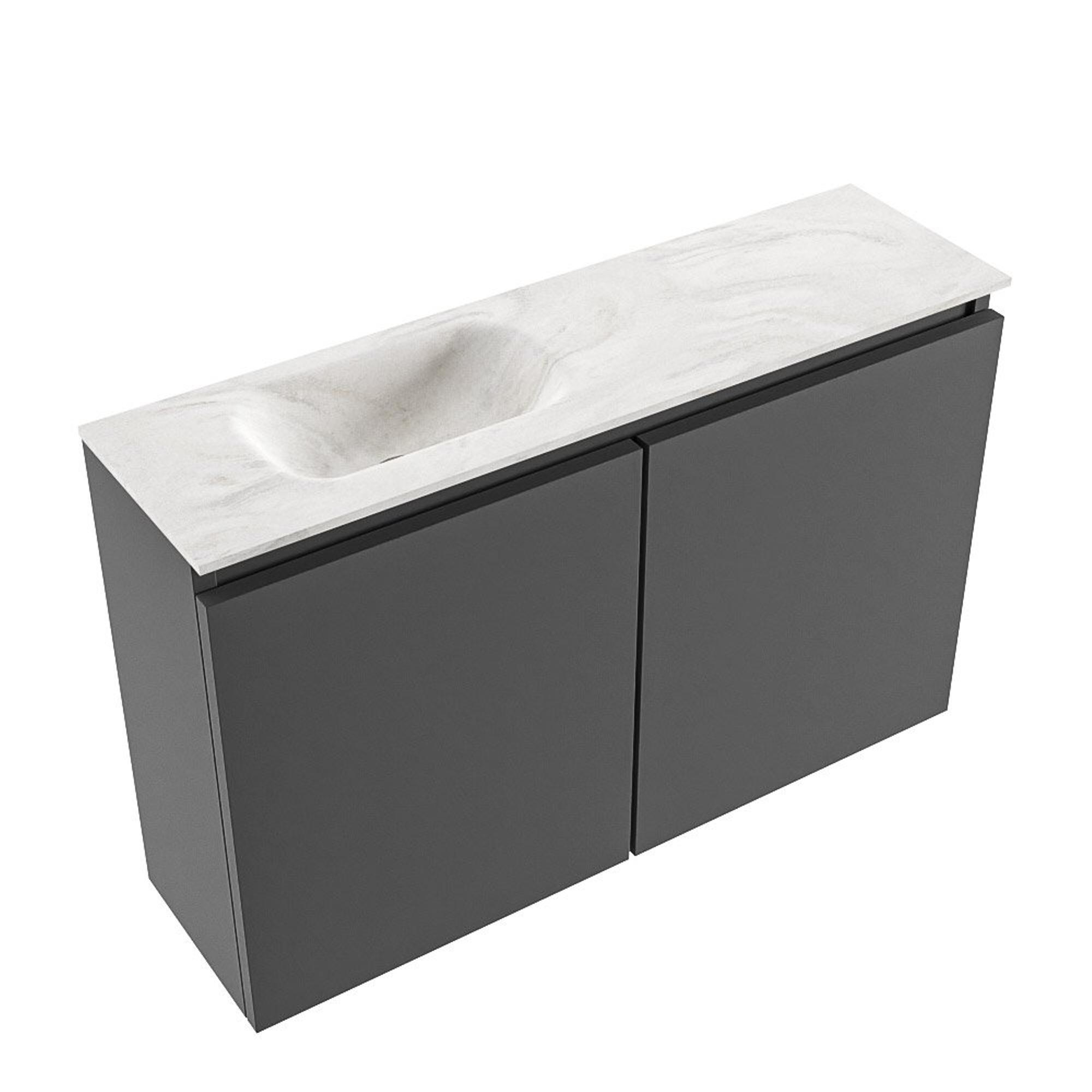 MONDIAZ TURE-DLUX meuble WC 80 cm Dark Grey. Lavabo EDEN Ostra position gauche. Avec 1 trou de robinet.