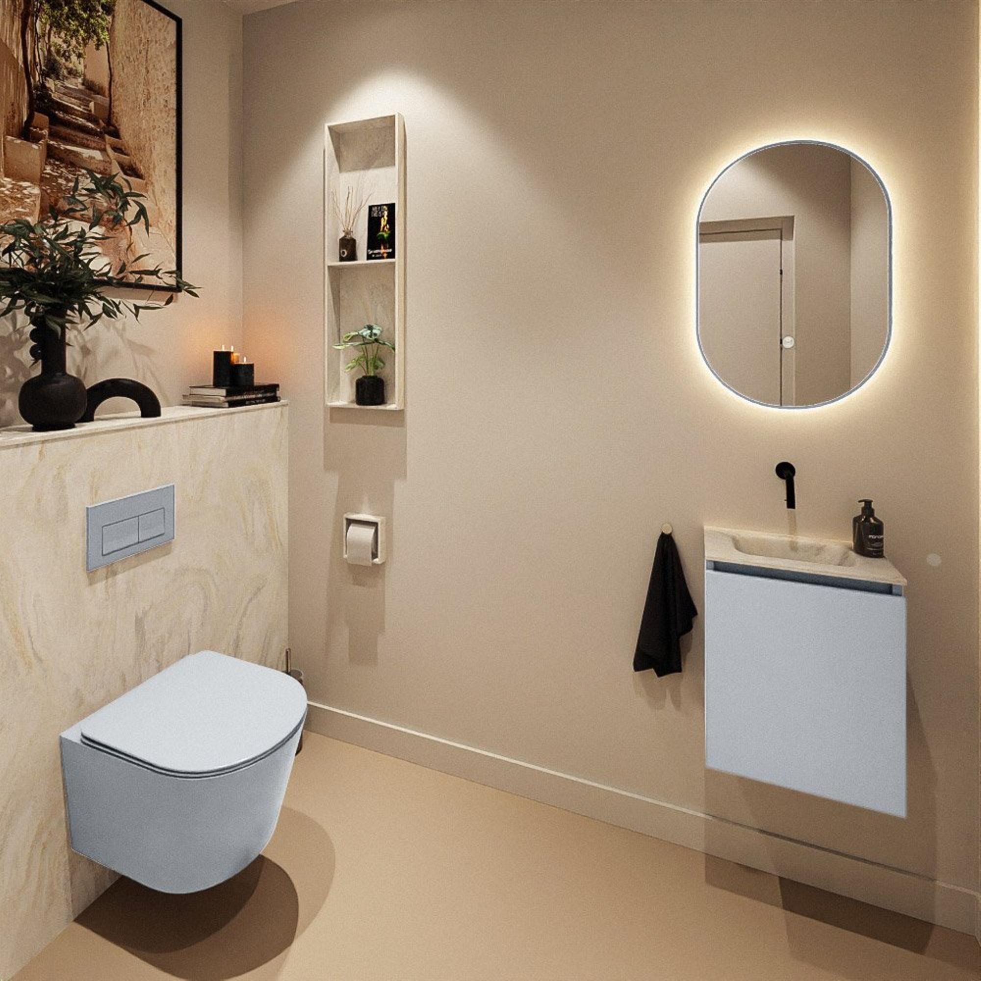 - Convient comme meuble élégant et pratique dans un WC invités ou un second WC