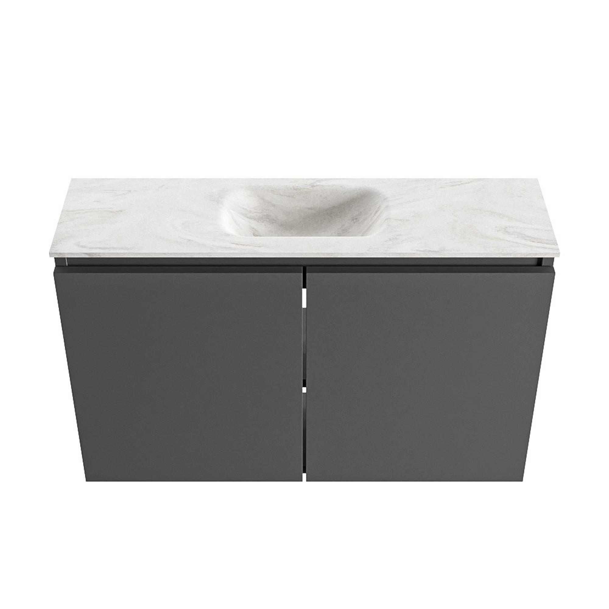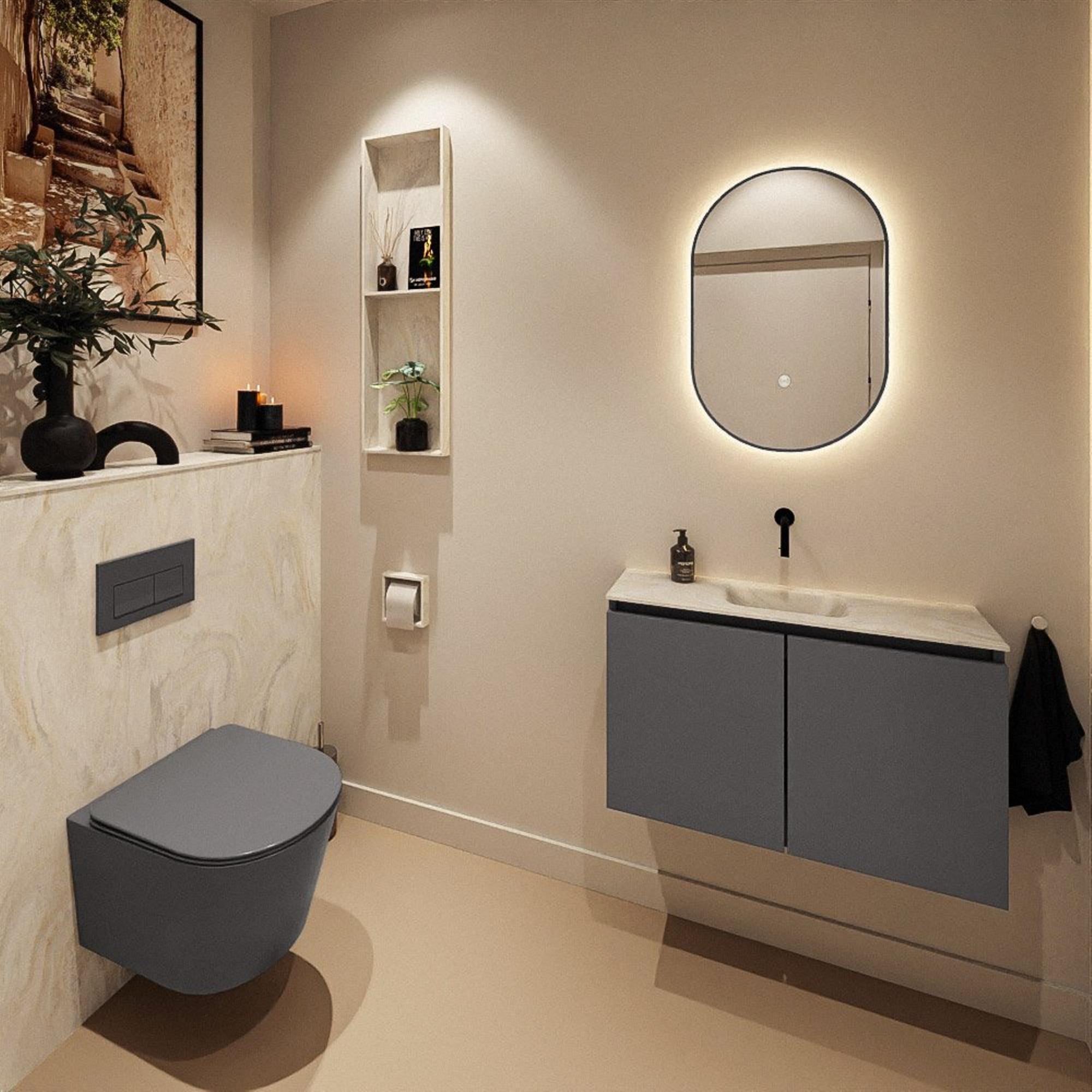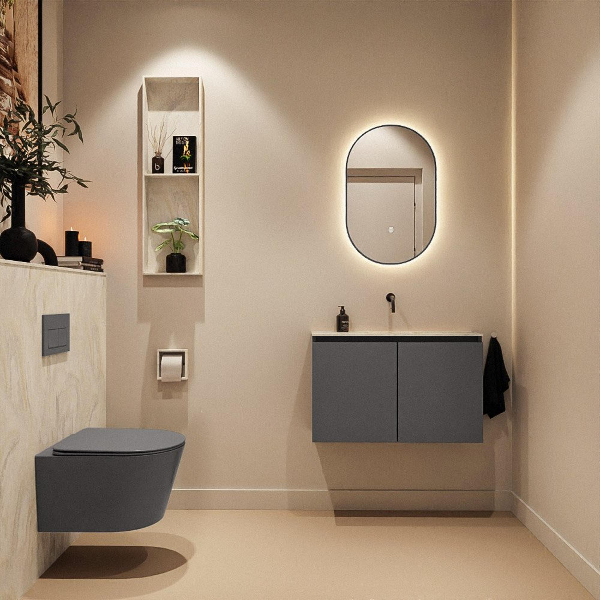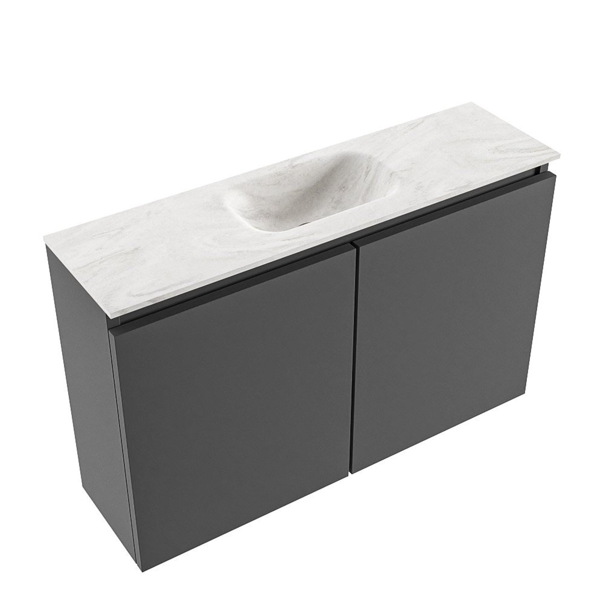 MONDIAZ TURE-DLUX meuble WC 80 cm Dark Grey. Lavabo EDEN Ostra position milieu. Sans trou de robinet.
