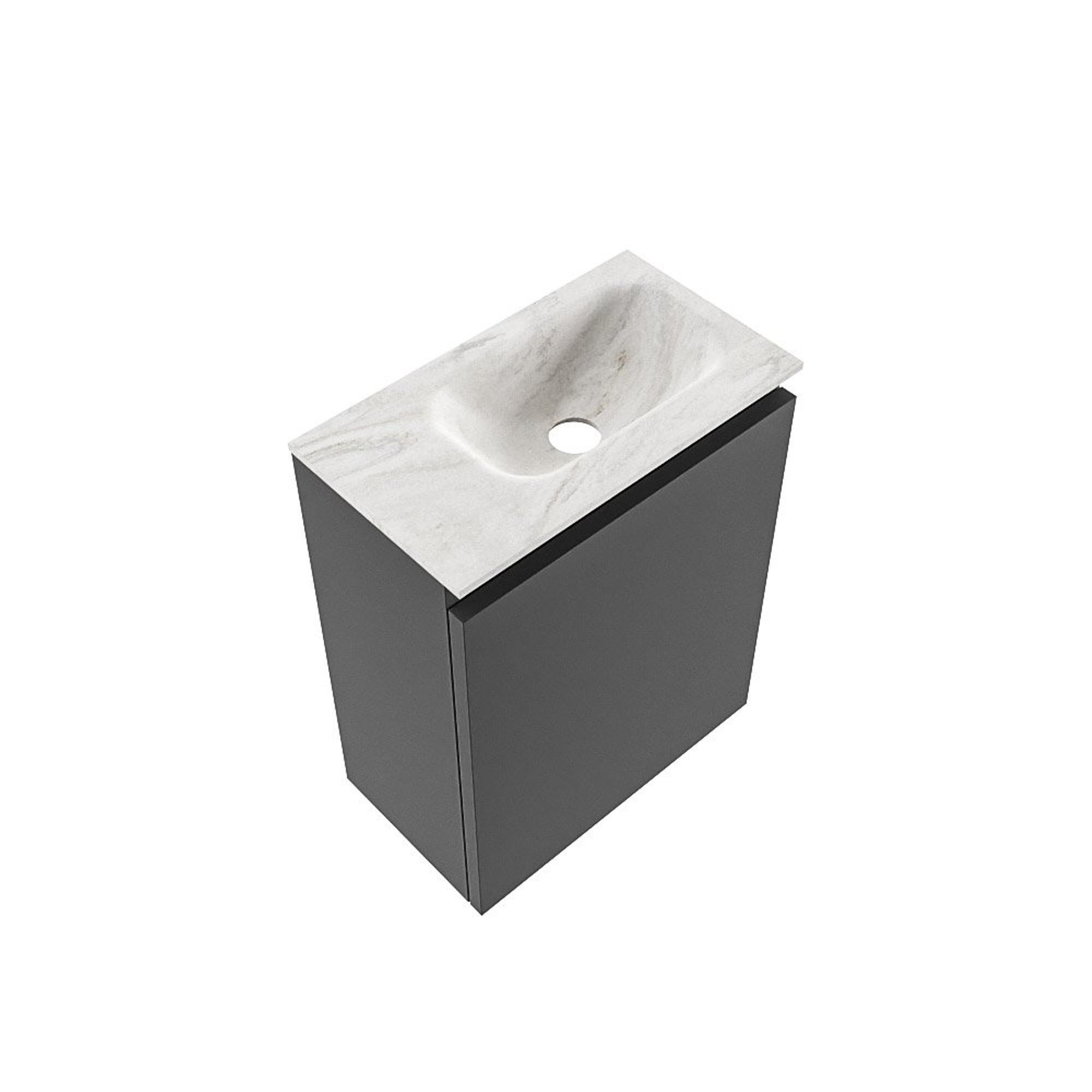 MONDIAZ TURE-DLUX meuble de toilettes 40cm Dark Grey. EDEN lavabo Ostra position droite. Sans trou de robinet.