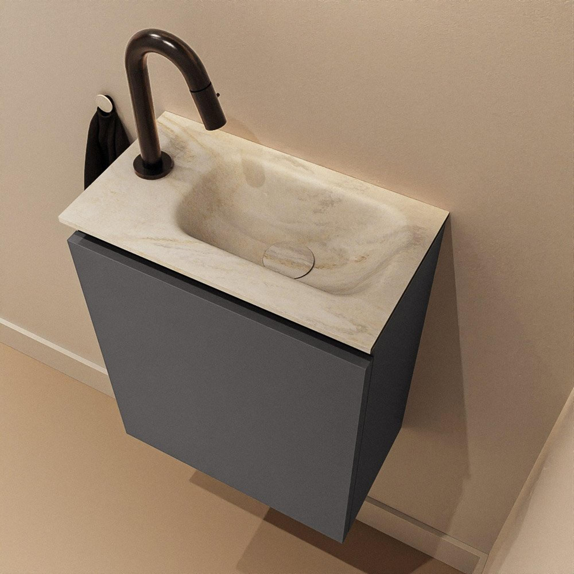 MONDIAZ TURE-DLUX Meuble de toilettes 40cm Dark Grey. EDEN lavabo Ostra position droite. Avec 1 trou de robinet.