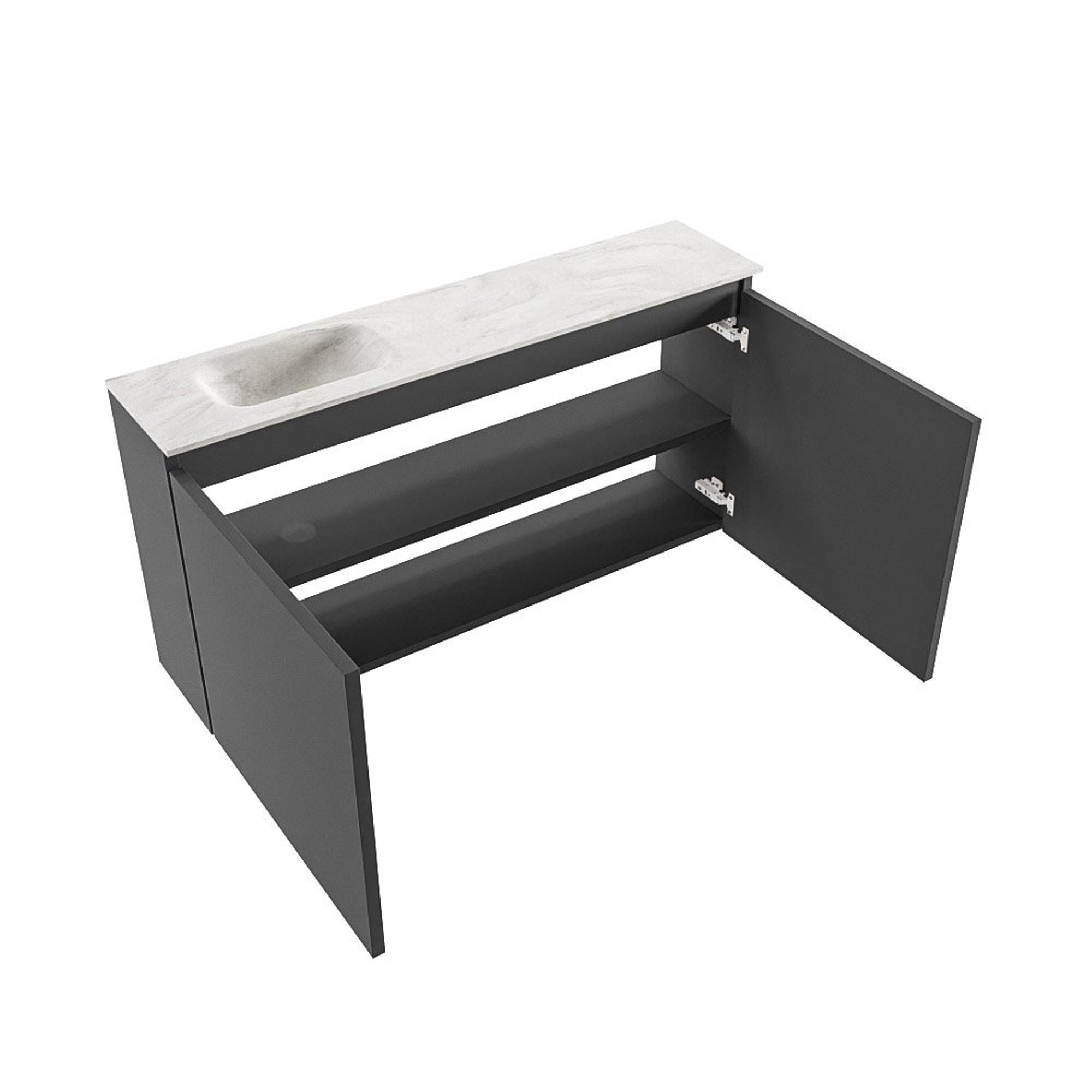 MONDIAZ TURE-DLUX meuble WC 100 cm Dark Grey. Lavabo EDEN Ostra position gauche. Sans trou de robinet.