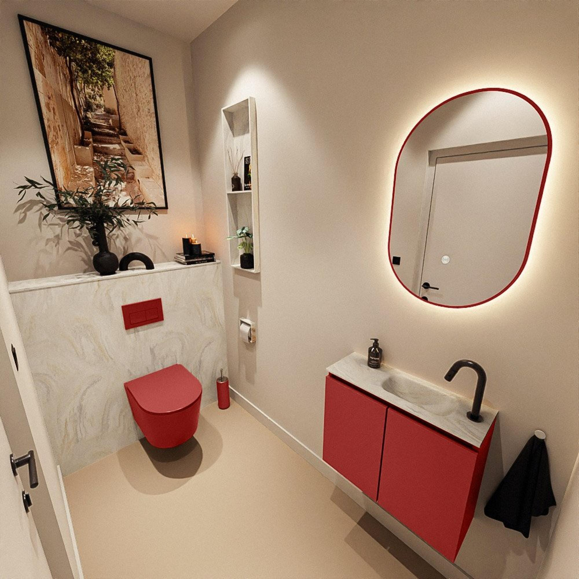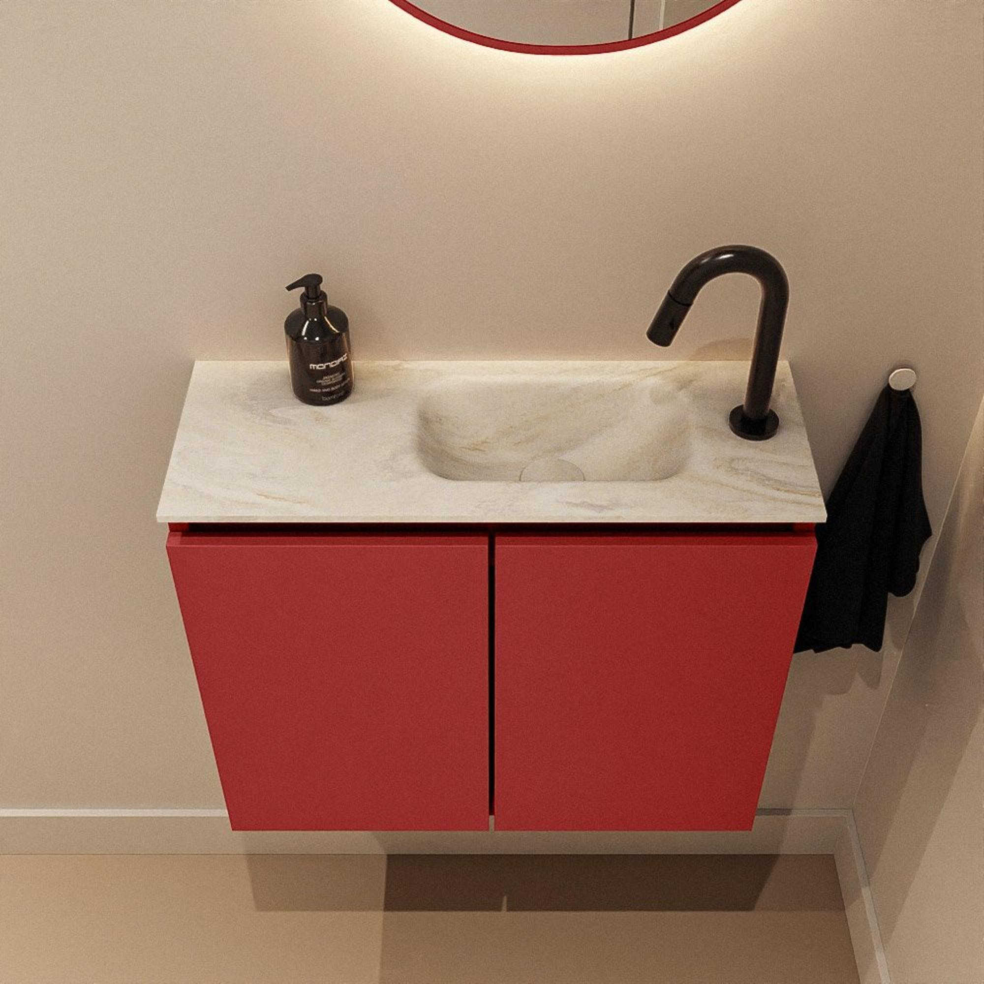 MONDIAZ TURE-DLUX Meuble de toilette 60cm Fire. Lavabo EDEN Ostra position droite. Avec 1 trou de robinet.