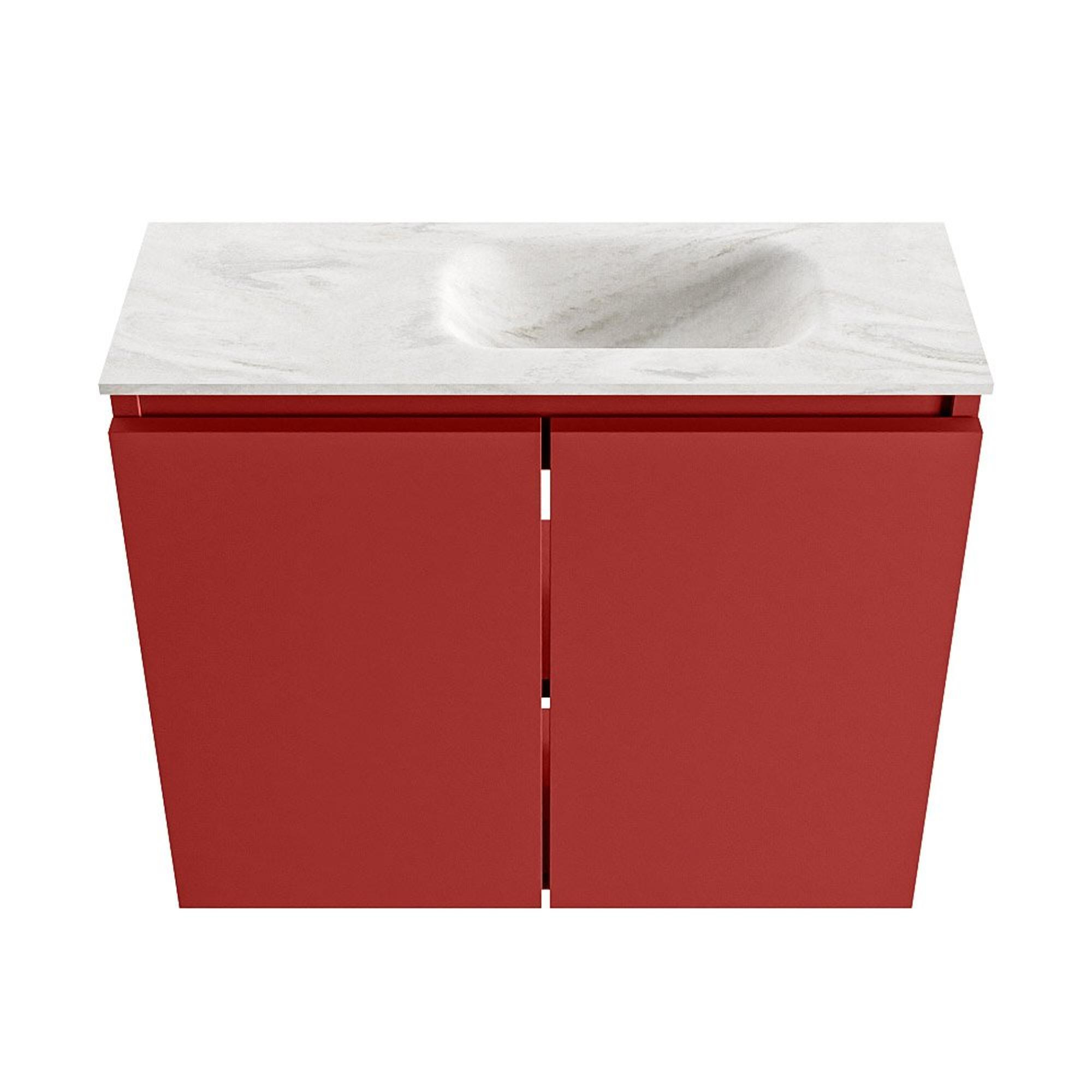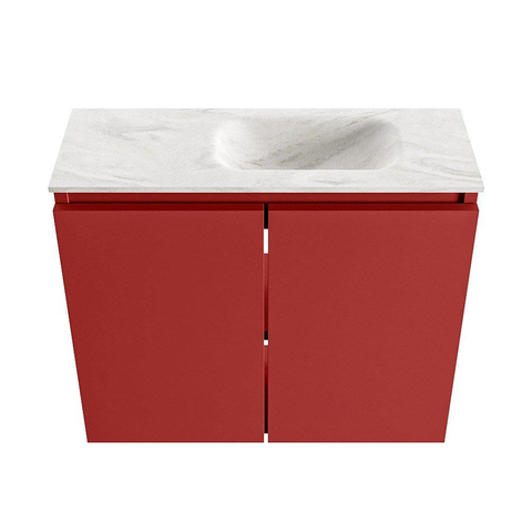 Si vous recherchez un meuble élégant et peu encombrant pour vos toilettes ou une petite salle de bains, ce modèle compact est un choix astucieux. Grâce à sa faible profondeur, votre espace de circulation reste généreux, tout en disposant d’un lavabo à part entière pour vous laver rapidement les mains ou vous rafraîchir. La couleur rouge chaude apporte du caractère à un espace souvent oublié et se marie harmonieusement aussi bien avec des carreaux neutres qu’avec un intérieur plus affirmé. Grâce au lavabo intégré avec trou de robinetterie sur le côté droit, ce meuble est idéal si, par exemple, vous avez un WC étroit dont l’agencement demande une solution pratique et bien pensée. Vous combinez ainsi confort, design et fonctionnalité dans un ensemble épuré.