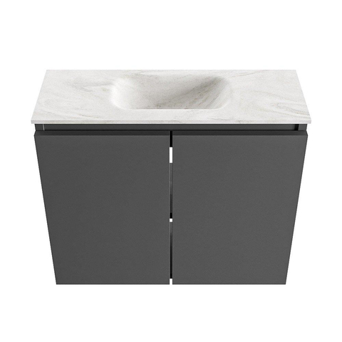 MONDIAZ TURE-DLUX Meuble WC 60 cm Dark Grey. EDEN vasque Ostra position milieu. Sans trou de robinet.