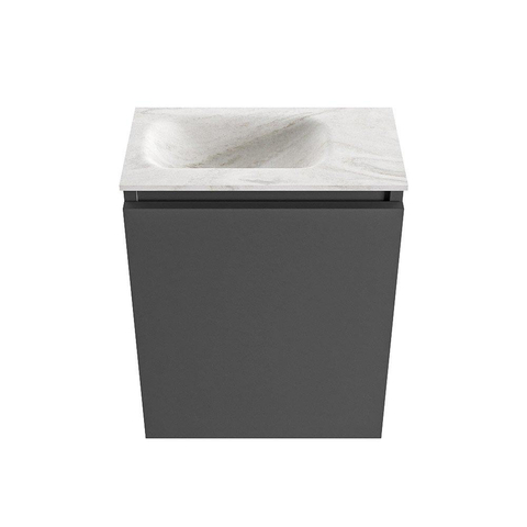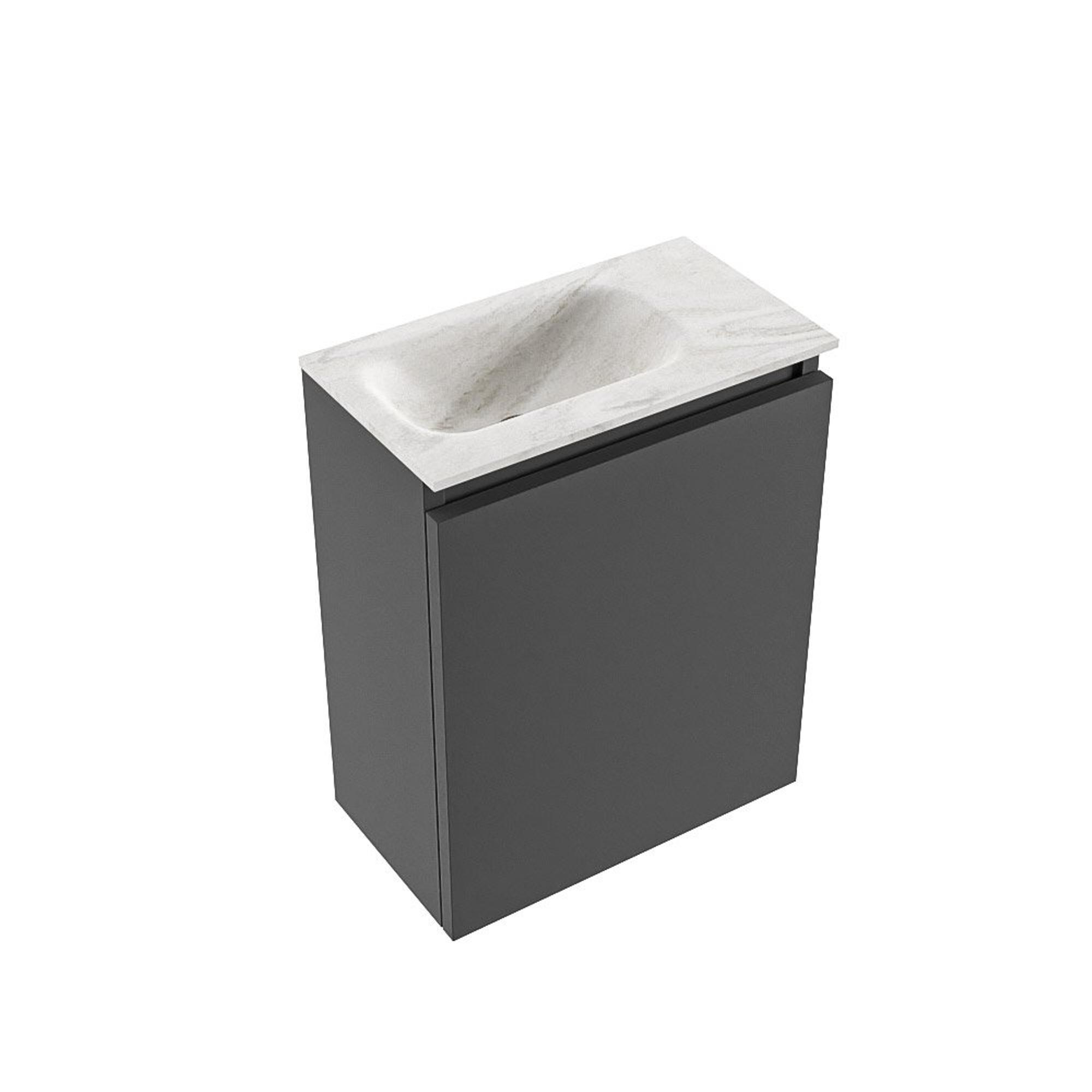 MONDIAZ TURE-DLUX Meuble WC 40 cm Dark Grey. EDEN lavabo Ostra position gauche. Sans trou de robinet.