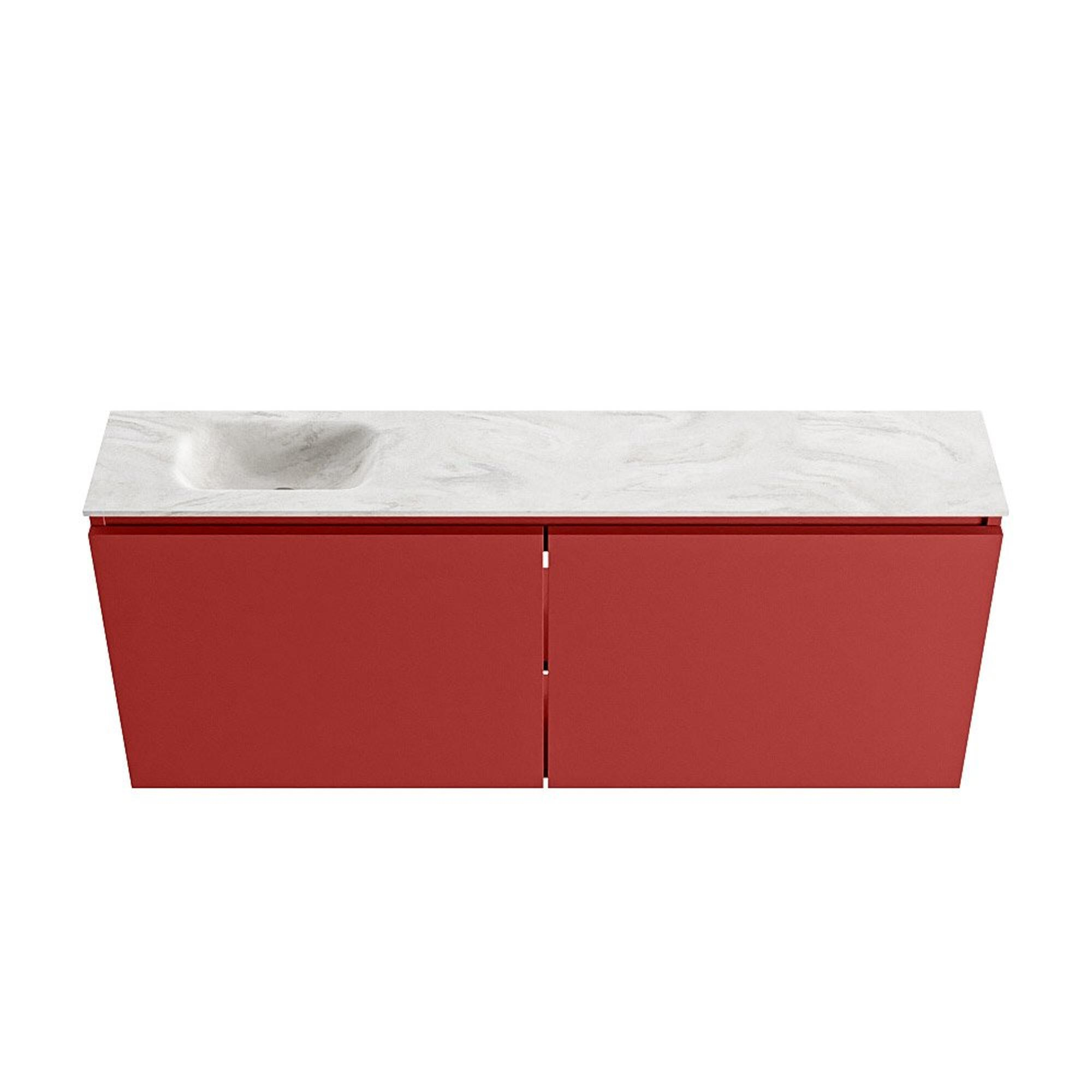 MONDIAZ TURE-DLUX meuble de toilettes 120 cm Fire. EDEN vasque Ostra position gauche. Sans trou de robinet.