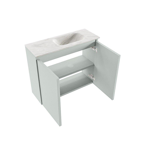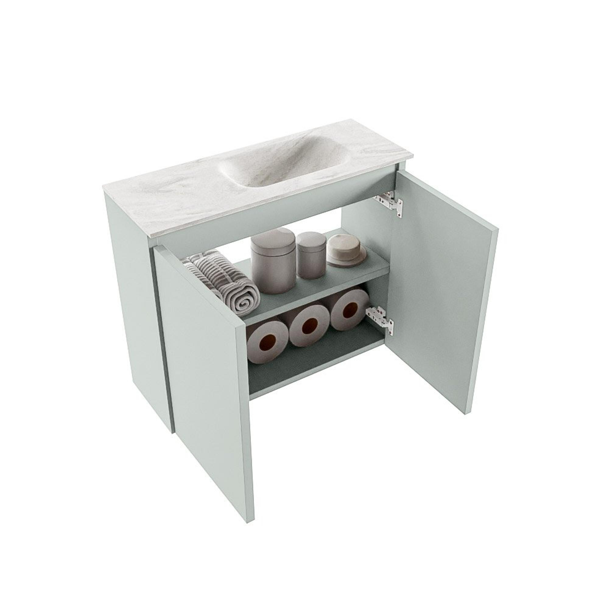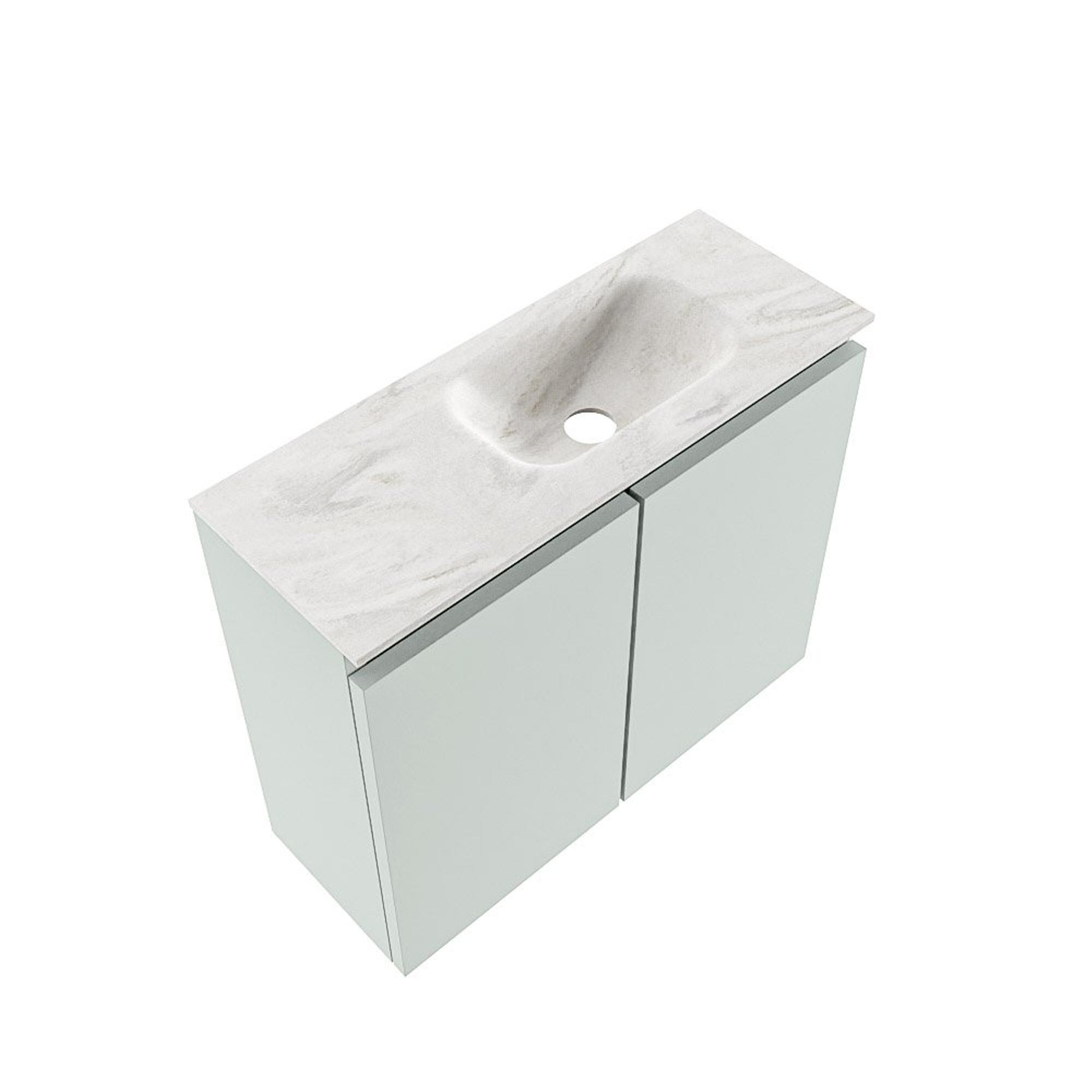 MONDIAZ TURE-DLUX meuble WC 60 cm Greey. EDEN vasque Ostra position à droite. Sans trou de robinet.