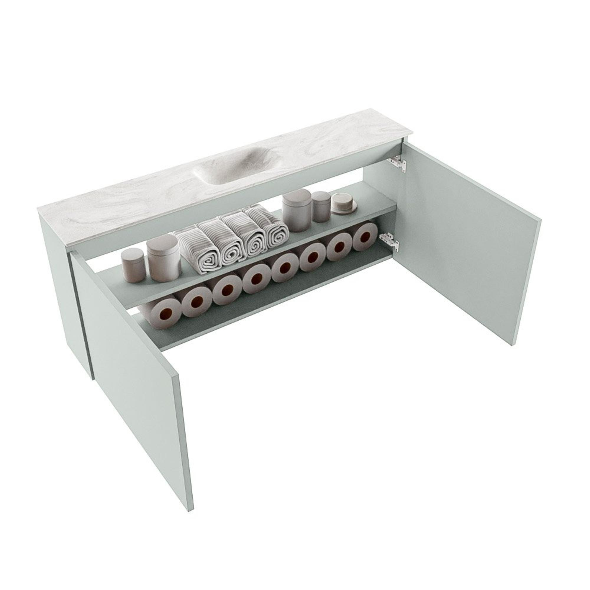 MONDIAZ TURE-DLUX meuble WC 120 cm Greey. Lavabo EDEN Ostra position centrale. Sans trou de robinet.