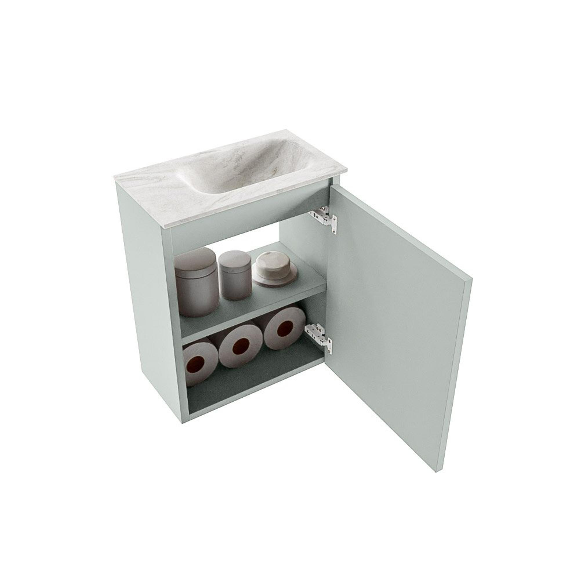 MONDIAZ TURE-DLUX meuble de toilette 40 cm Greey. Lavabo EDEN Ostra position droite. Avec 1 trou de robinet.