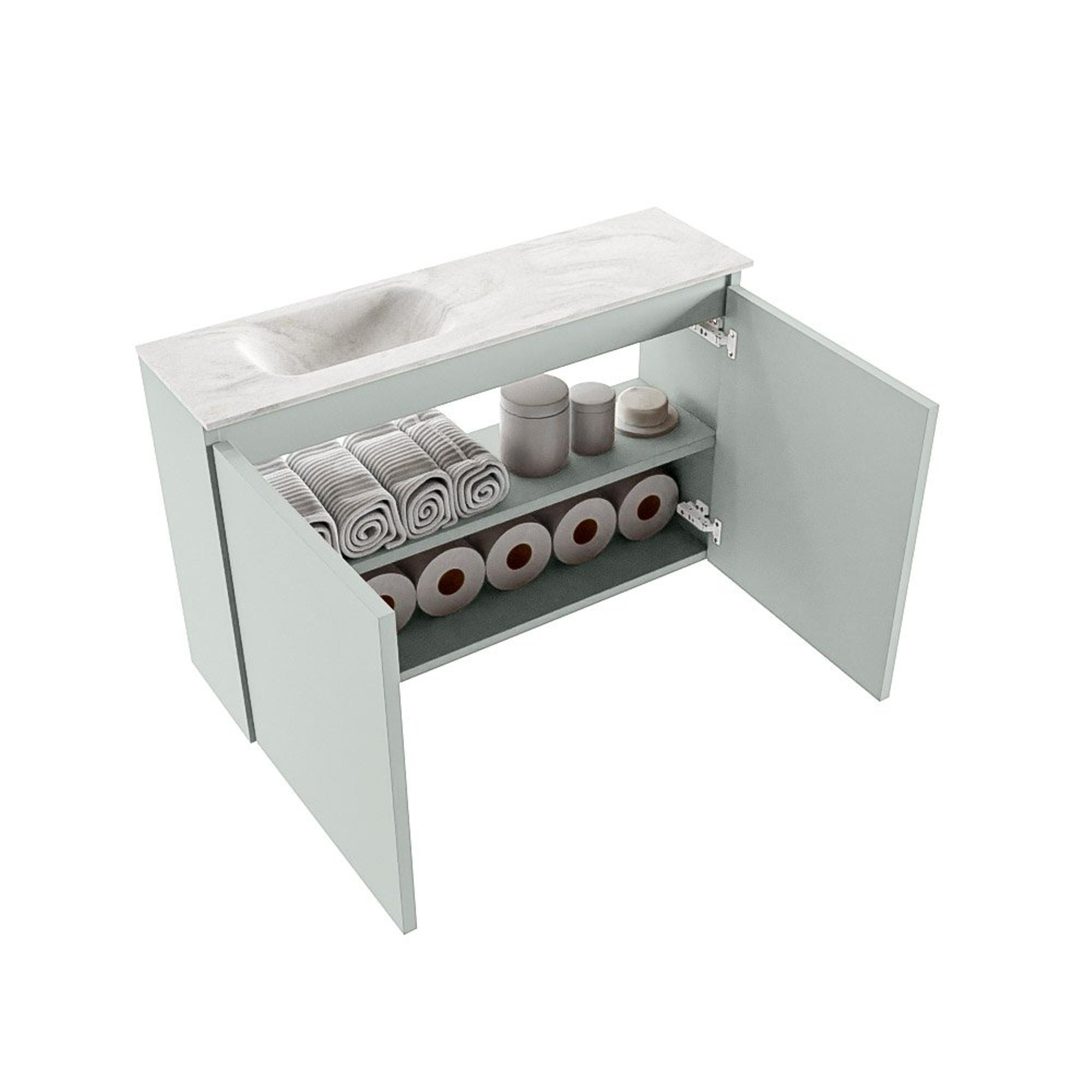 MONDIAZ TURE-DLUX meuble WC 80cm Greey. EDEN vasque Ostra position à gauche. Avec 1 trou de robinet.