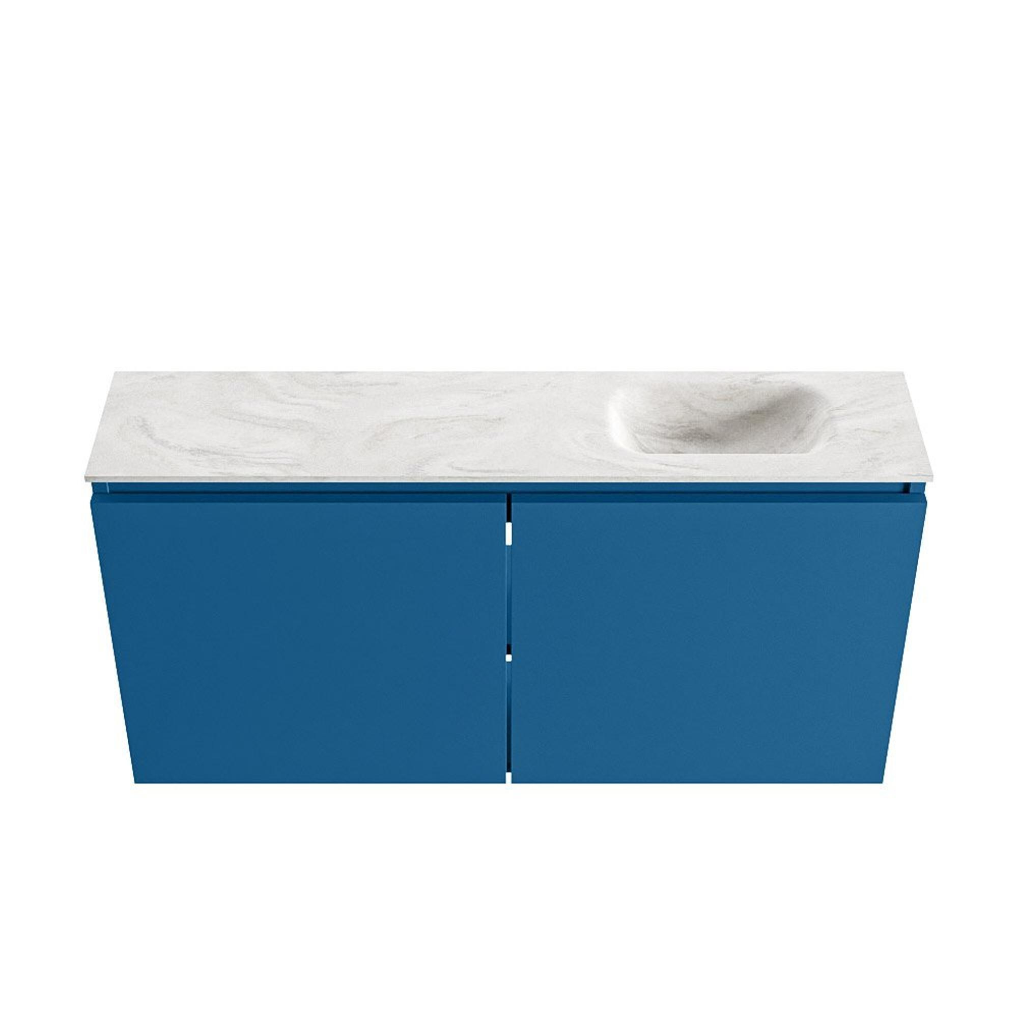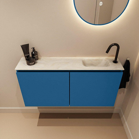 MONDIAZ TURE-DLUX Meuble WC 100 cm Jeans. EDEN lavabo Ostra position à droite. Avec 1 trou de robinet.