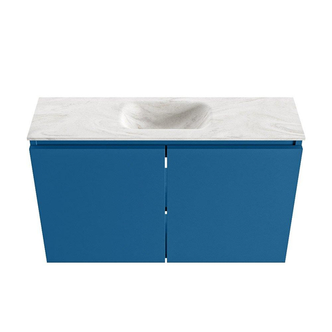 MONDIAZ TURE-DLUX meuble WC 80 cm Jeans. EDEN lavabo Ostra position milieu. Sans trou de robinet.