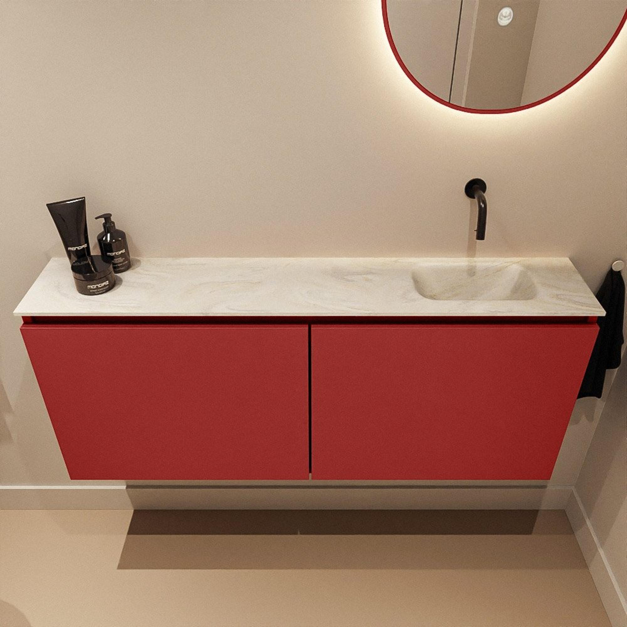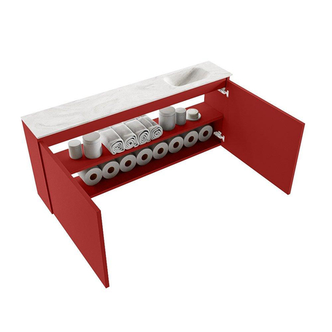 MONDIAZ TURE-DLUX Meuble WC 120cm Fire. EDEN vasque Ostra position à droite. Sans trou de robinet.