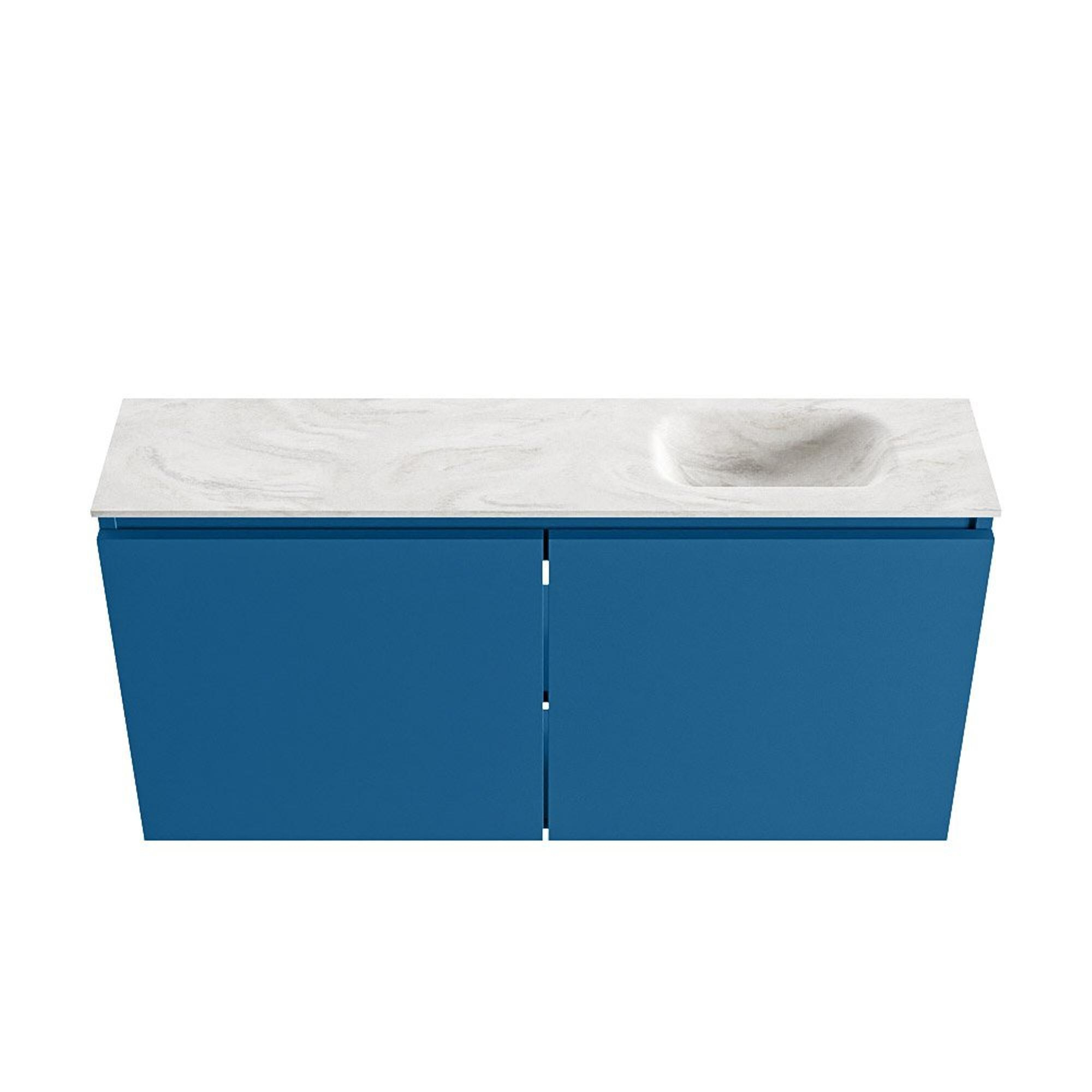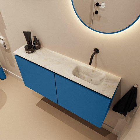 MONDIAZ TURE-DLUX meuble de toilettes 100cm Jeans. Lavabo EDEN Ostra position à droite. Sans trou de robinet.
