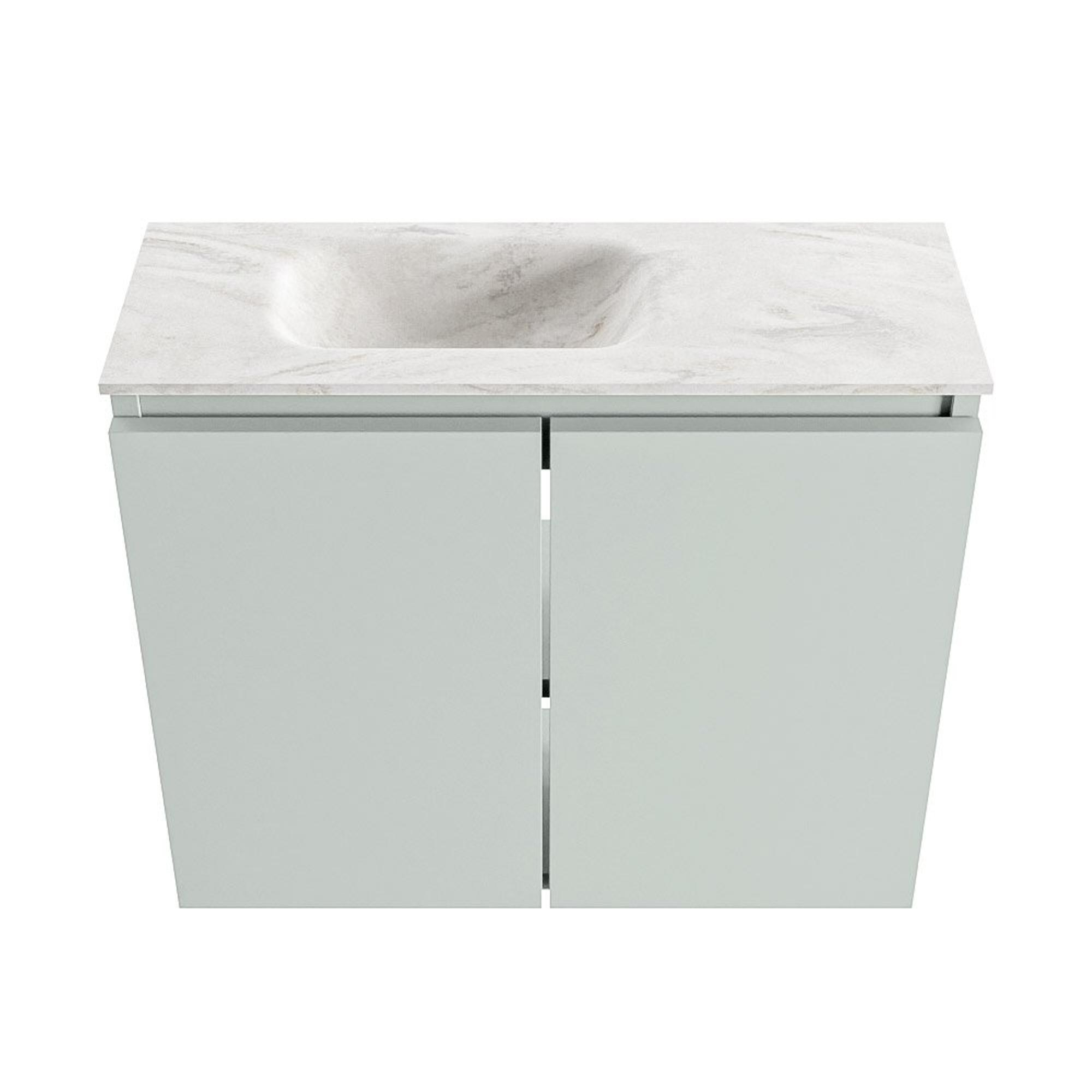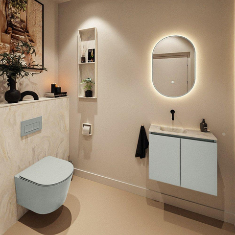 MONDIAZ TURE-DLUX Meuble de toilettes 60 cm Greey. Lavabo EDEN Ostra position gauche. Sans trou de robinet.
