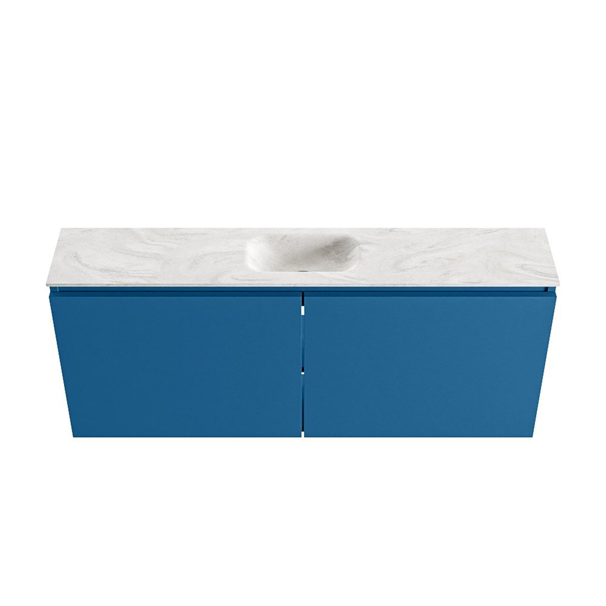 MONDIAZ TURE-DLUX meuble WC 120 cm Jeans. EDEN lavabo Ostra position milieu. Sans trou de robinet.