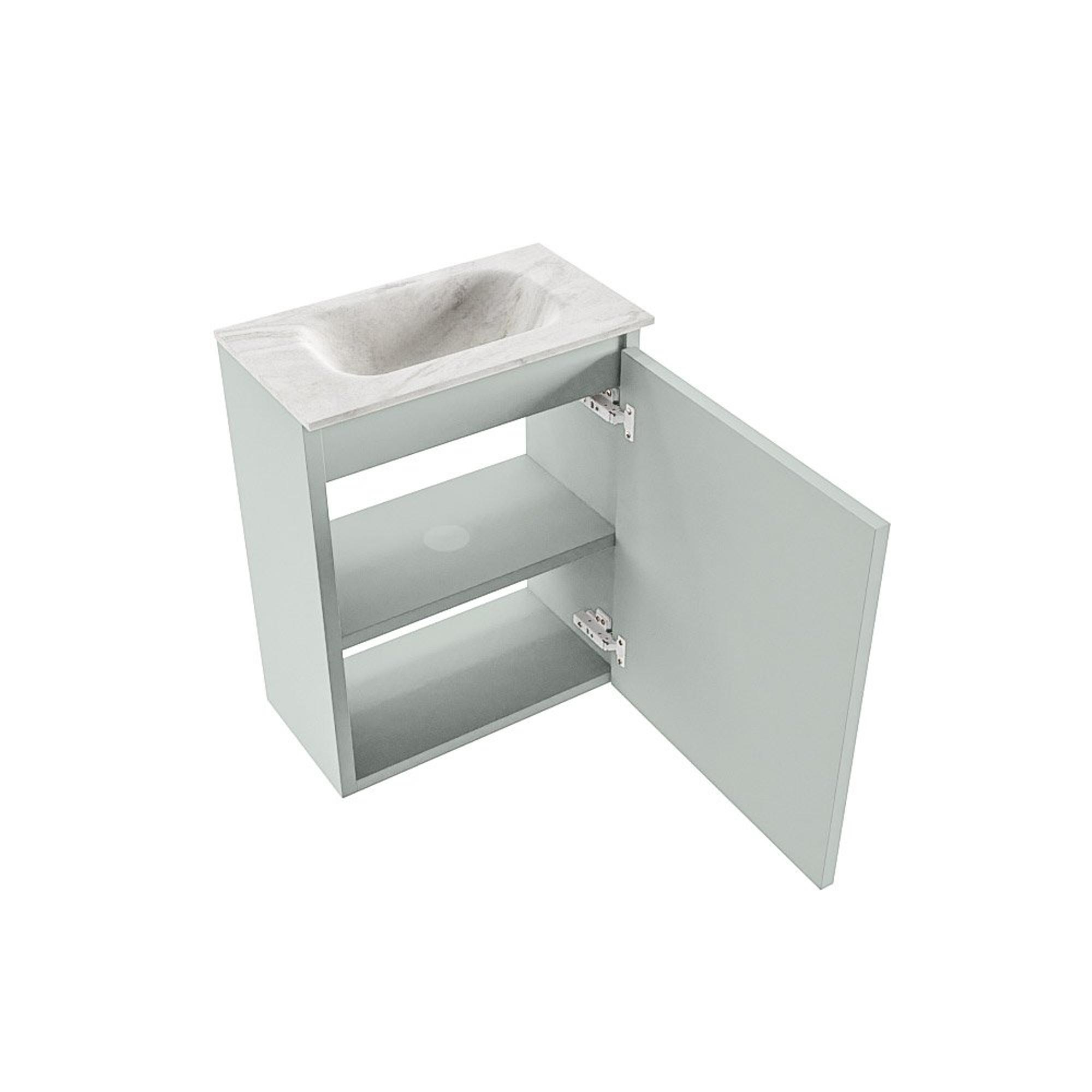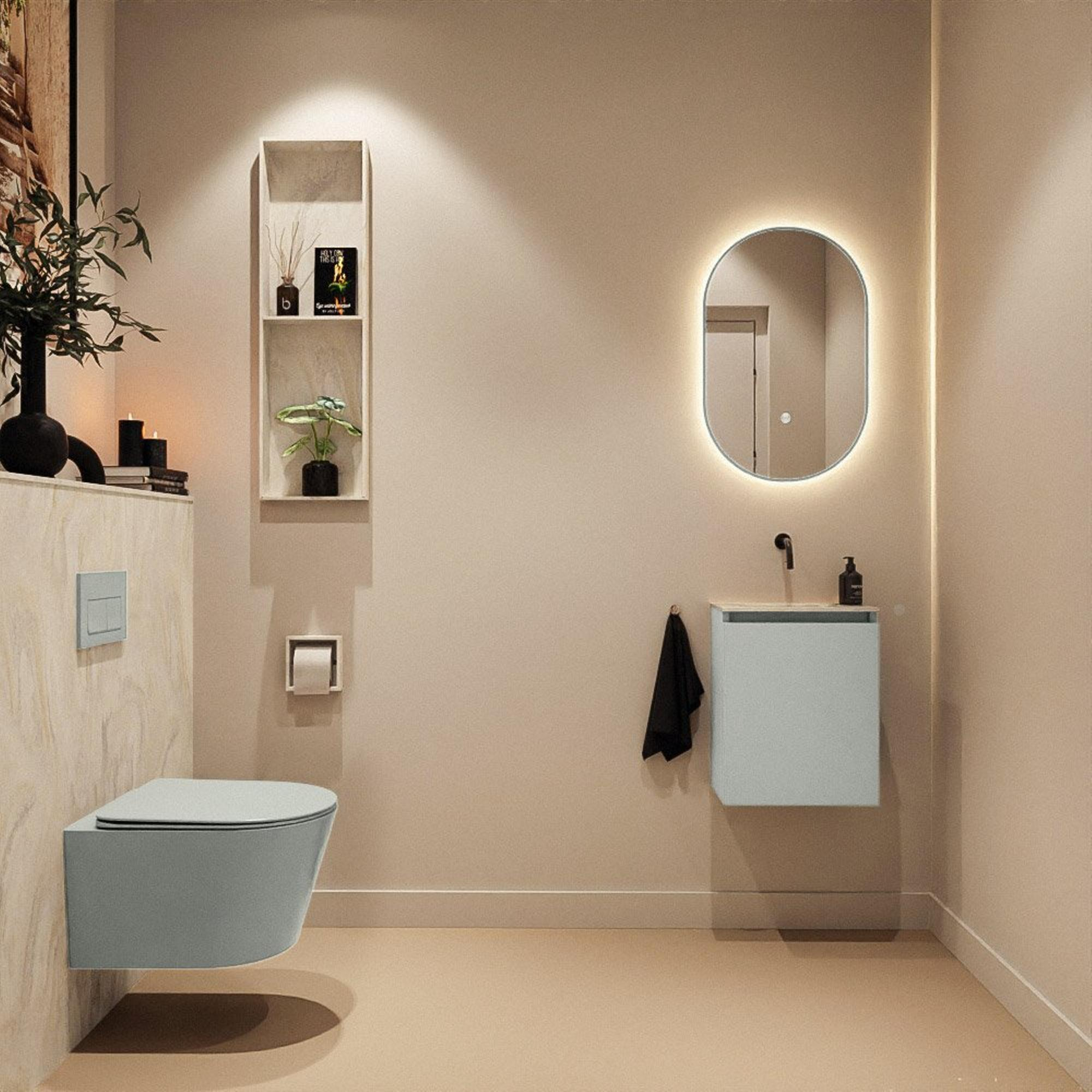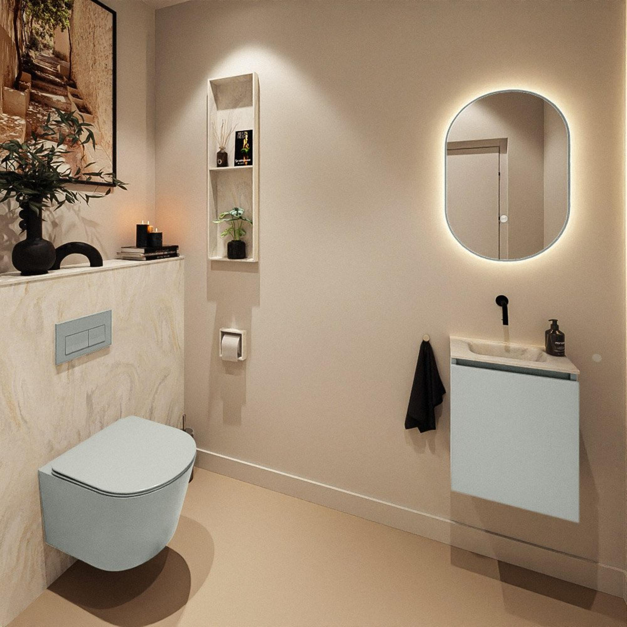MONDIAZ TURE-DLUX Meuble WC 40 cm Greey. Lavabo EDEN Ostra position milieu. Sans trou de robinet.