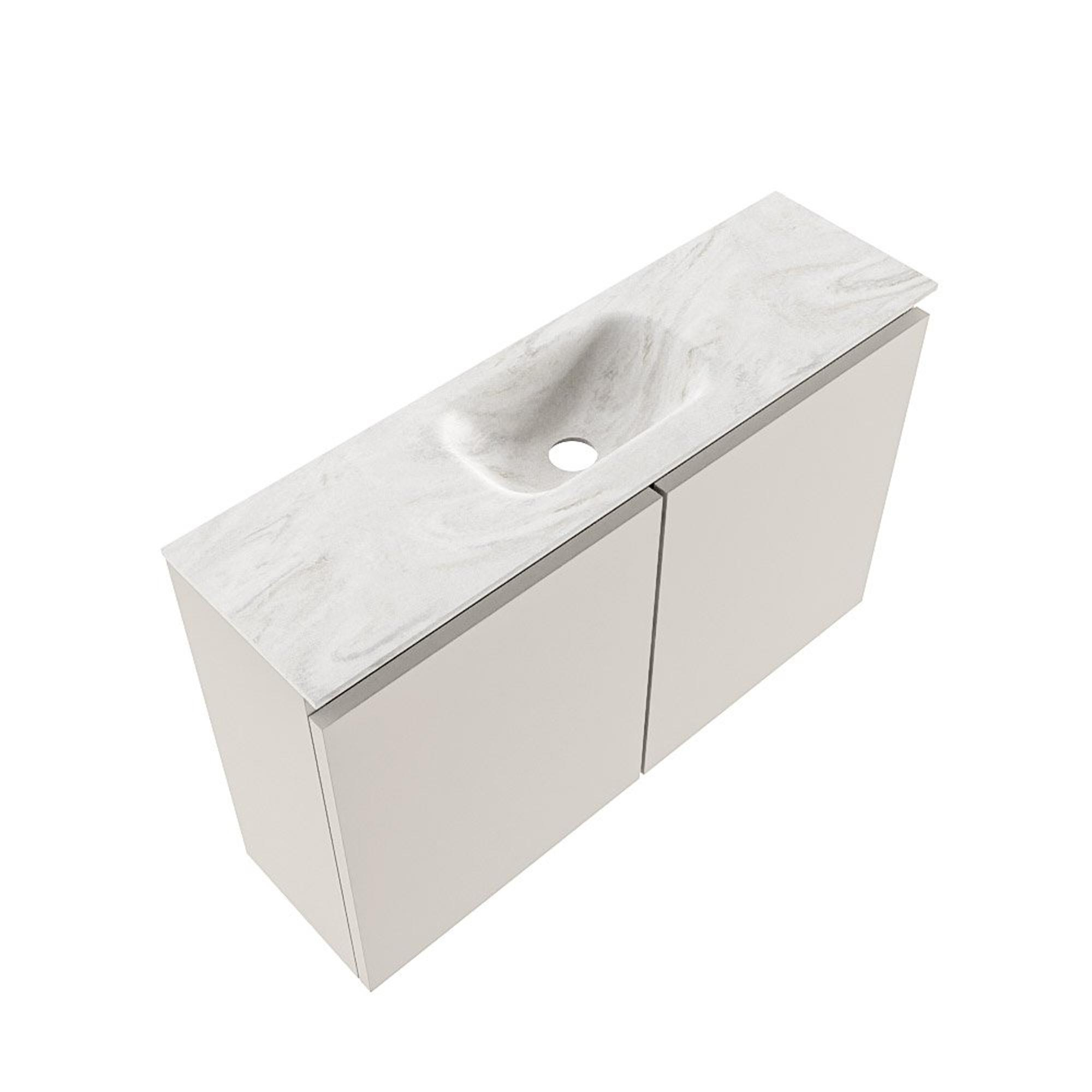 MONDIAZ TURE-DLUX Meuble WC 80 cm Linen. Lavabo EDEN Ostra position milieu. Avec 1 trou de robinet.