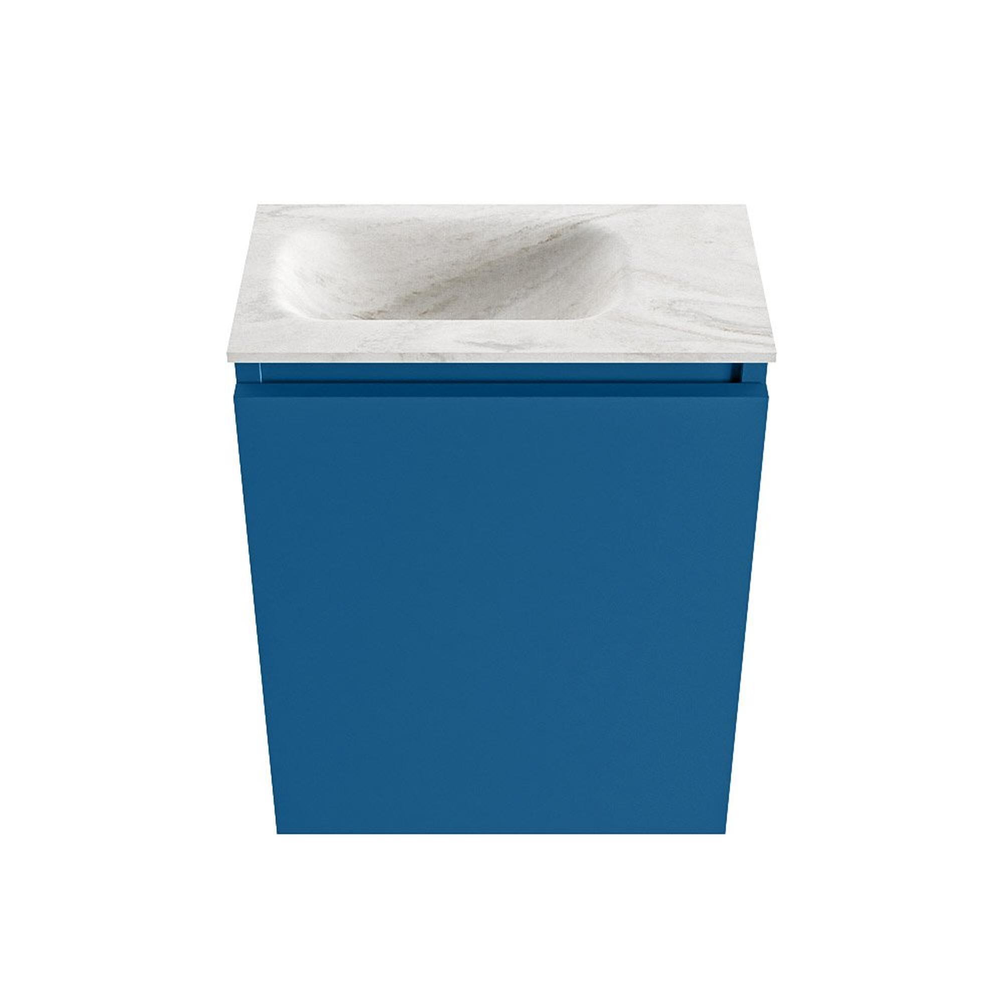 MONDIAZ TURE-DLUX Meuble de toilettes - 40cm - Jeans - EDEN - lavabo Ostra - position à gauche - Sans trou de robinet