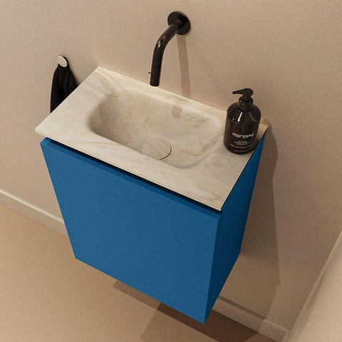 MONDIAZ TURE-DLUX Meuble WC 40 cm Jeans. Lavabo EDEN Ostra position milieu. Sans trou de robinet.